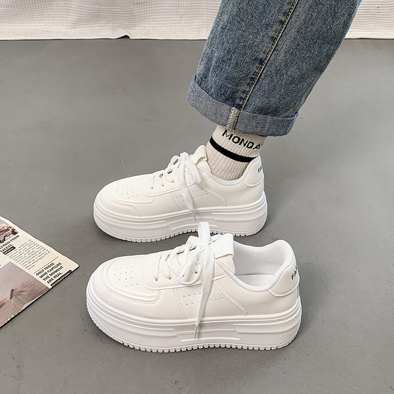 スーツに合う6センチ厚底レースアップスニーカー軽量シンプル系