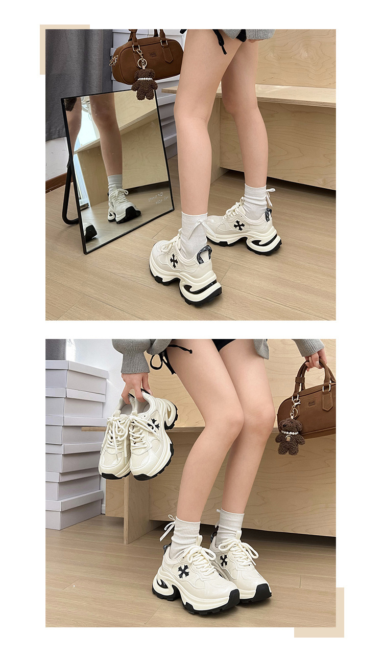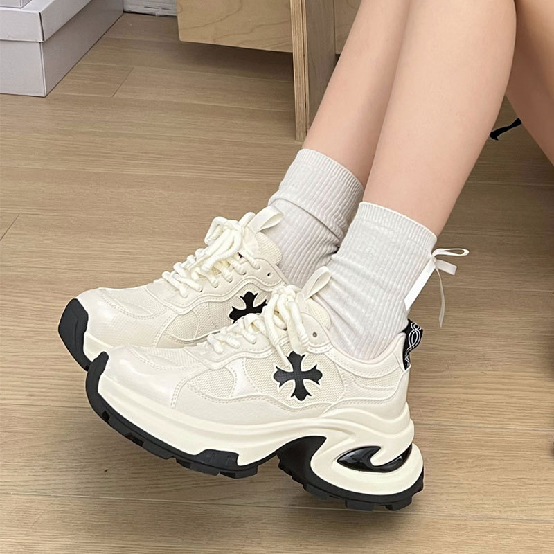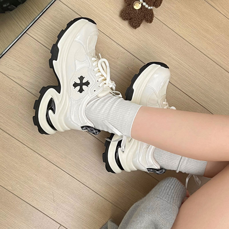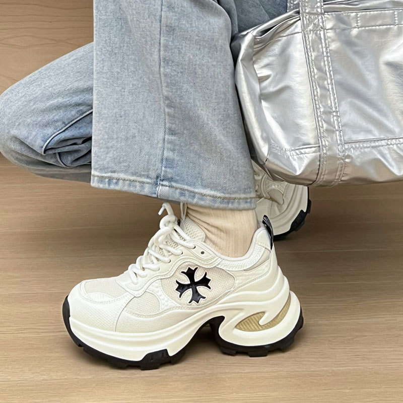 個性的なクロスモチーフがアクセントになった厚底スニーカーです。