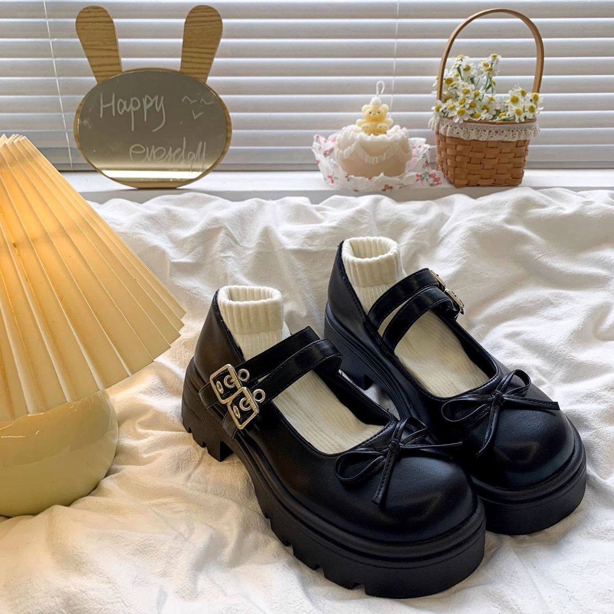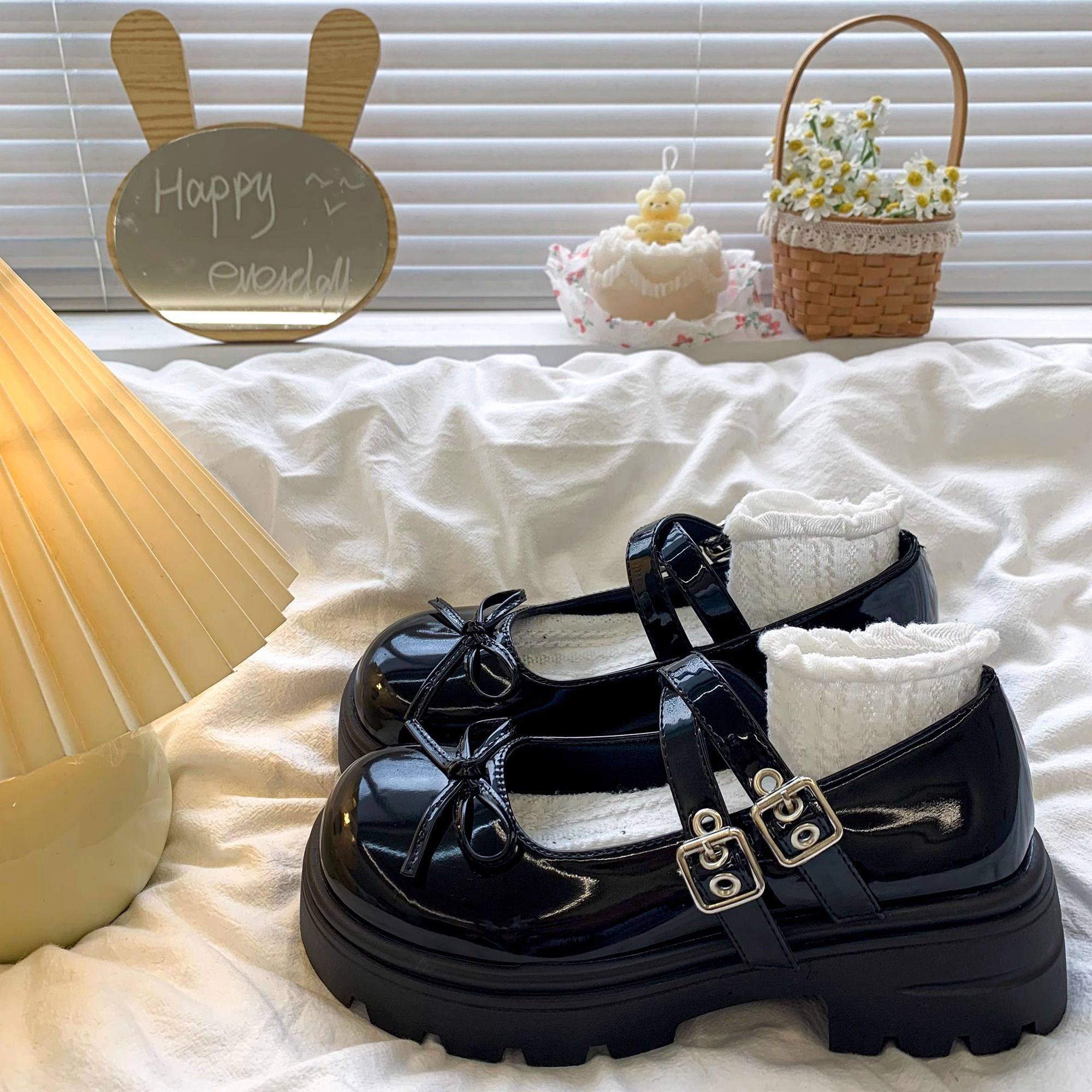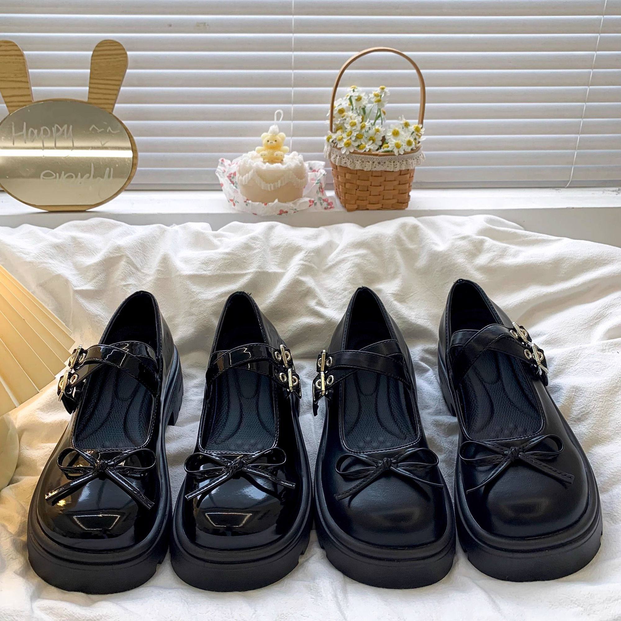 甘さと個性を兼ね備えた厚底パンプスが登場しました。 つま先の愛らしいリボンとストラップの二連バックルがアクセントになり、足元を華やかに演出します。 ボリュームのある厚底ソールは安定感抜群で長時間の歩行も快適です。 エナメル調の光沢感が上品な印象を与え、カジュアルからガーリーな着こなしまで幅広く対応できるパンプスです。
