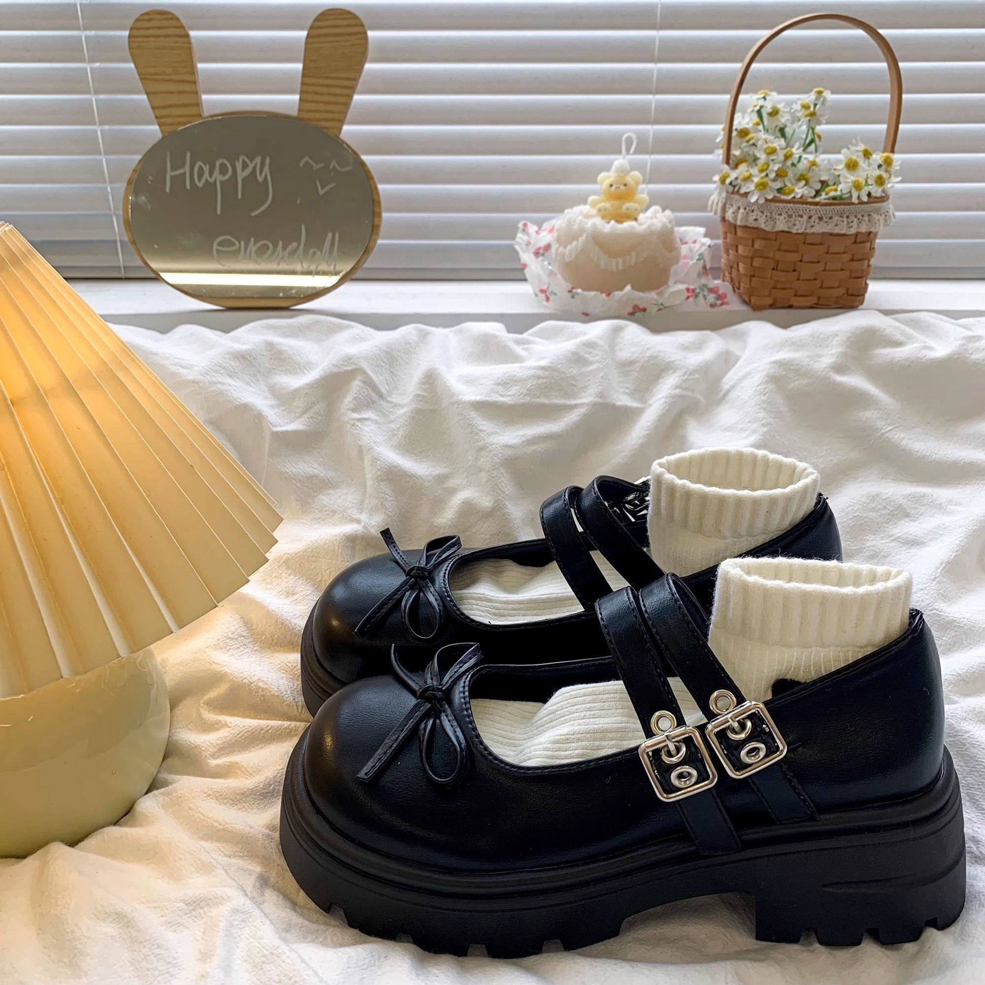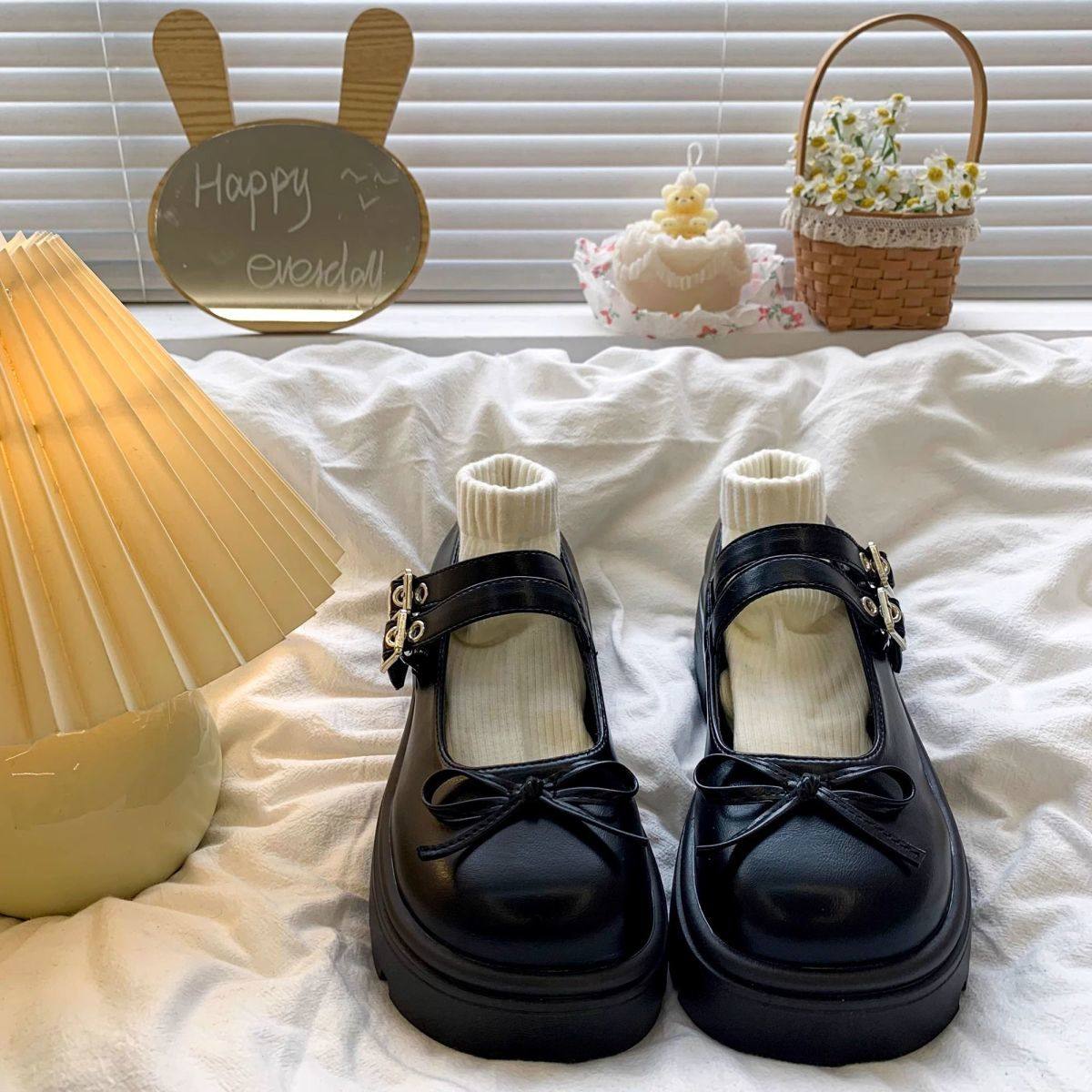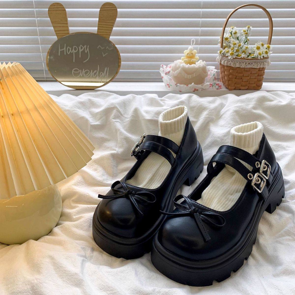 甘さと個性を兼ね備えた厚底パンプスが登場しました。 つま先の愛らしいリボンとストラップの二連バックルがアクセントになり、足元を華やかに演出します。 ボリュームのある厚底ソールは安定感抜群で長時間の歩行も快適です。 エナメル調の光沢感が上品な印象を与え、カジュアルからガーリーな着こなしまで幅広く対応できるパンプスです。