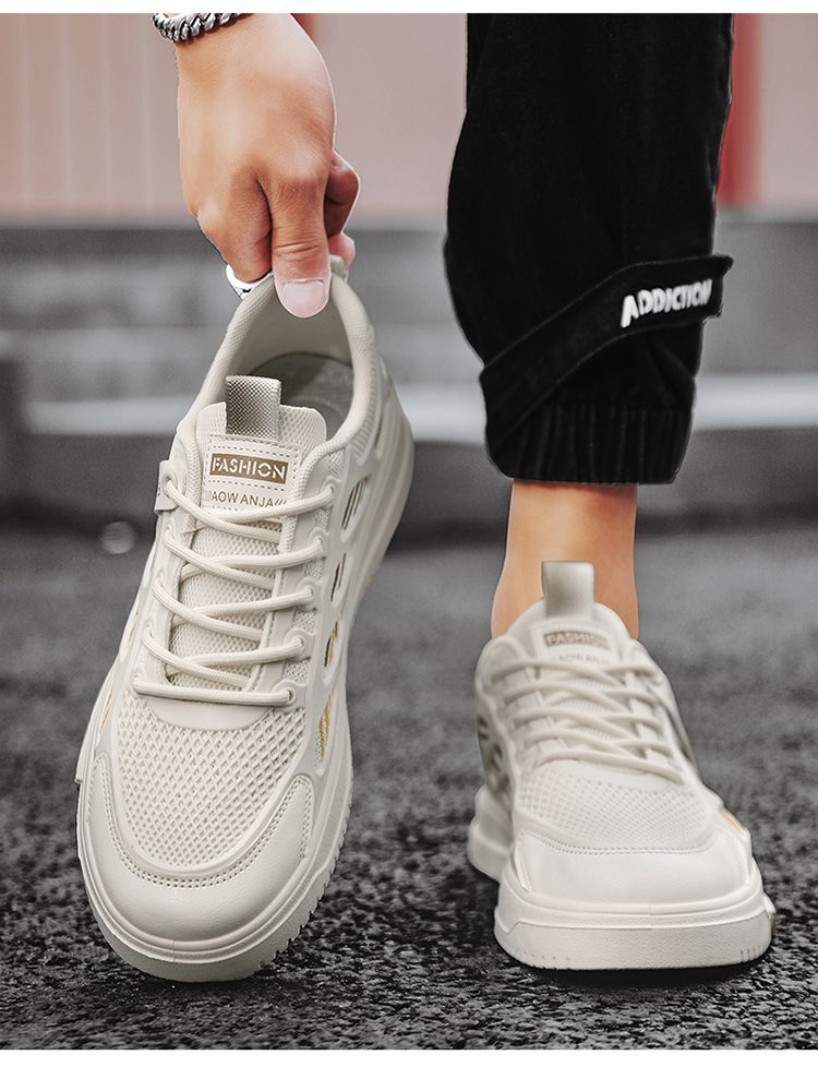 通気性に優れたメッシュ素材を贅沢に使用した厚底スニーカーです。 サイドに施された流線型のデザインが躍動感を演出し、スポーティな印象を与えます。 ボリュームのある厚底ソールは軽量でクッション性が高く、長時間の歩行でも疲れにくい設計です。 アウトソールには凹凸のあるグリップパターンを採用し、安定した歩行をサポートします。 カジュアルからスポーツシーンまで幅広く活躍するスニーカーです。