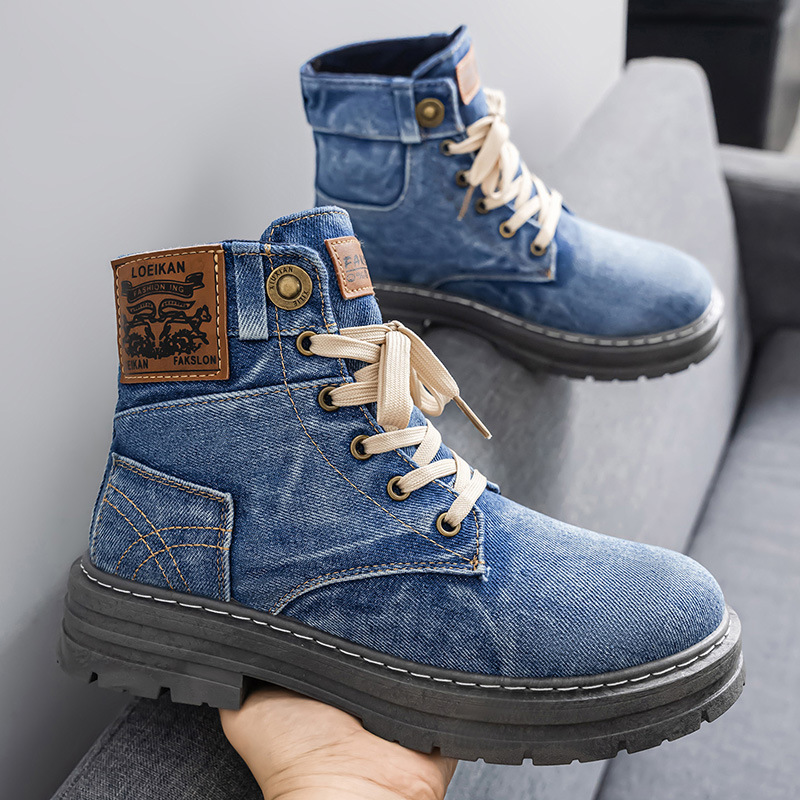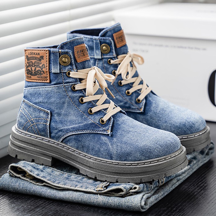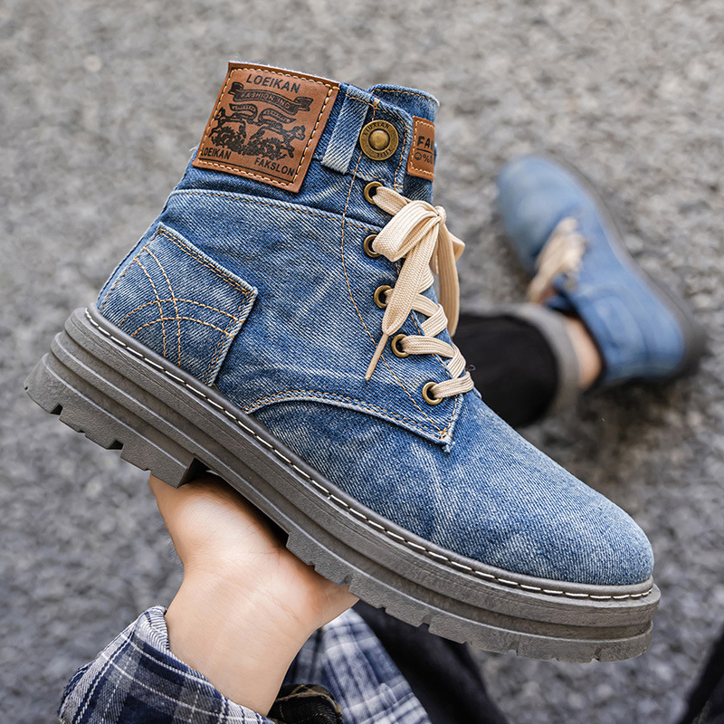 カジュアルなデニム素材を使用した個性的なハイカットブーツです。