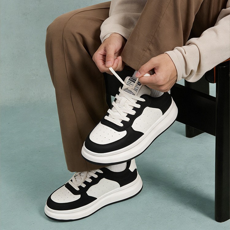 クラシカルな切替デザインが目を引く厚底スニーカーです。 ボリューム感のあるソールが足元に存在感をプラスし、スタイルアップ効果も抜群。 通気性に優れた素材を使用し、長時間の着用も快適です。 カジュアルからきれいめコーディネートまで幅広く合わせられる万能なスニーカーで、デイリーユースに最適です。 軽量設計で歩きやすさにもこだわりました。