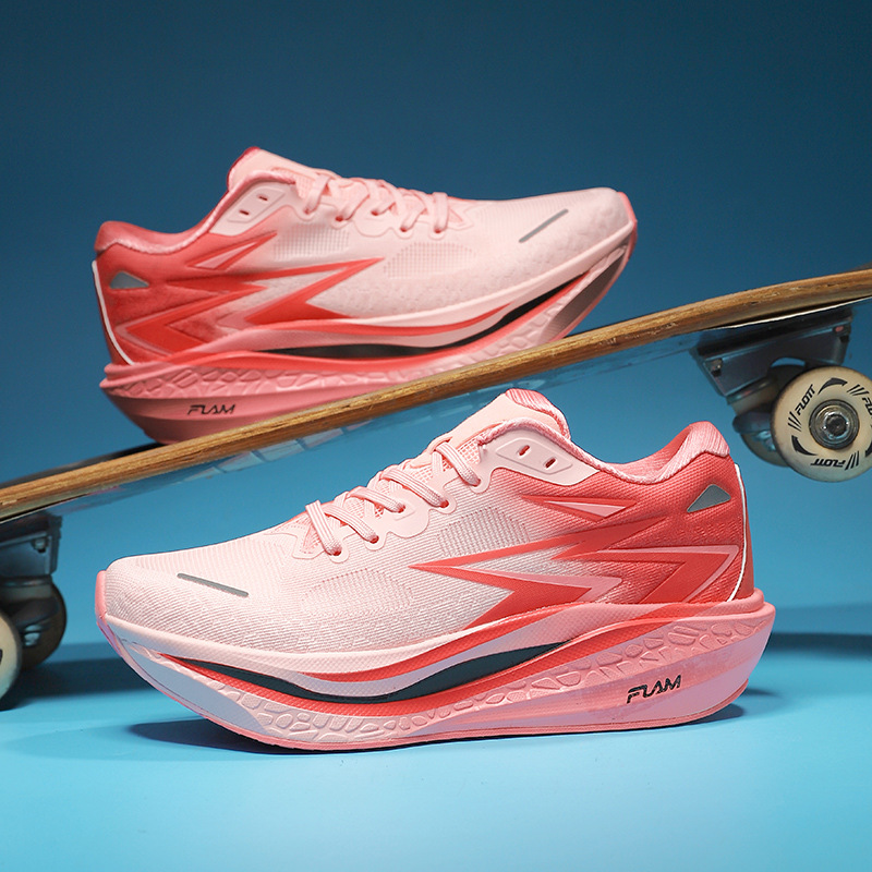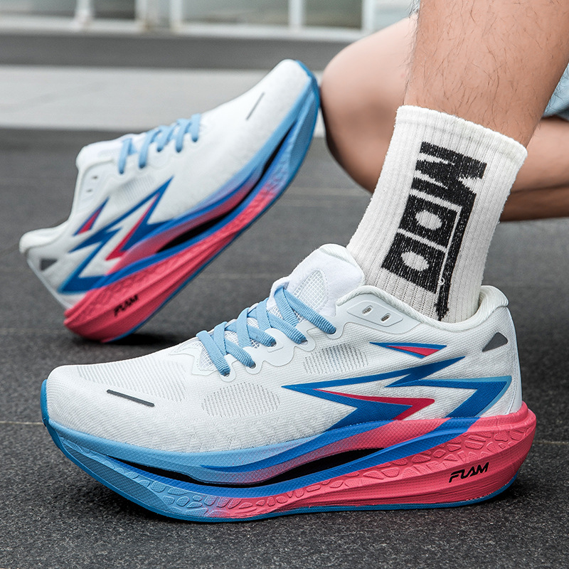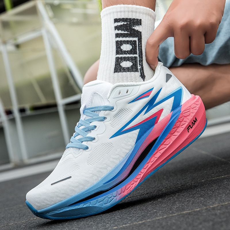 通気性に優れたメッシュ素材のアッパーが足元を快適に保つ厚底スポーツシューズです。 多層構造のソールが優れた衝撃吸収性と反発力を実現し、長時間の走行でも足への負担を軽減します。 サイドの流線型デザインがスピード感を演出し、運動性能と見た目の両立を追求しました。 日常のジョギングから本格的なトレーニングまで幅広く対応できる高機能モデルです。