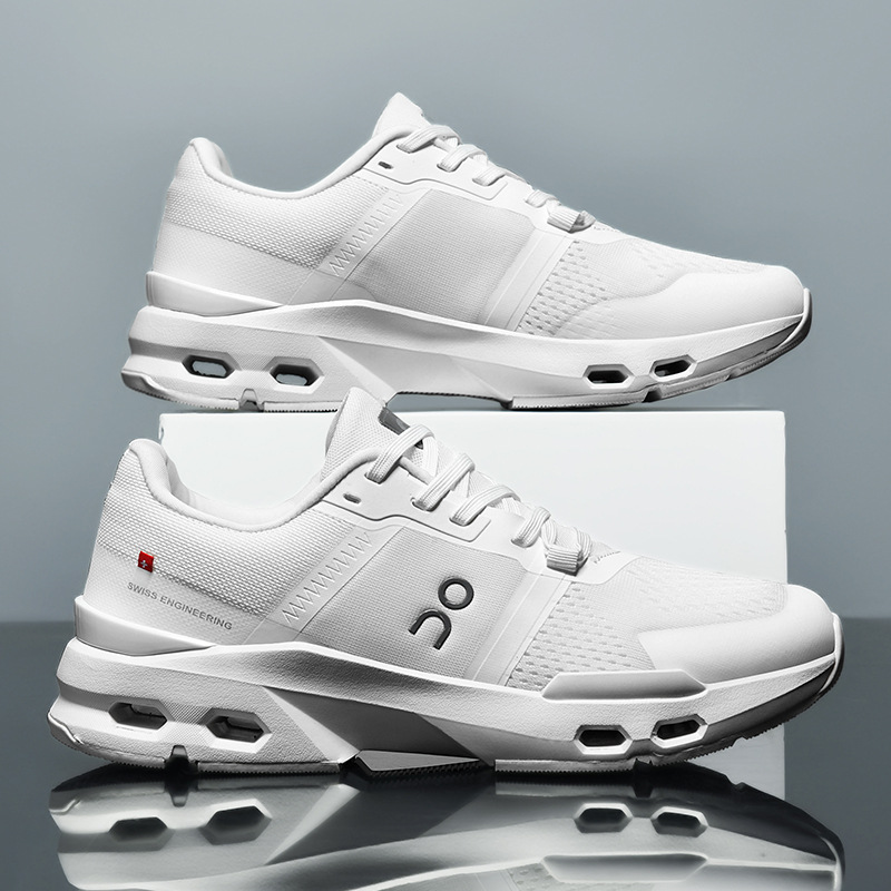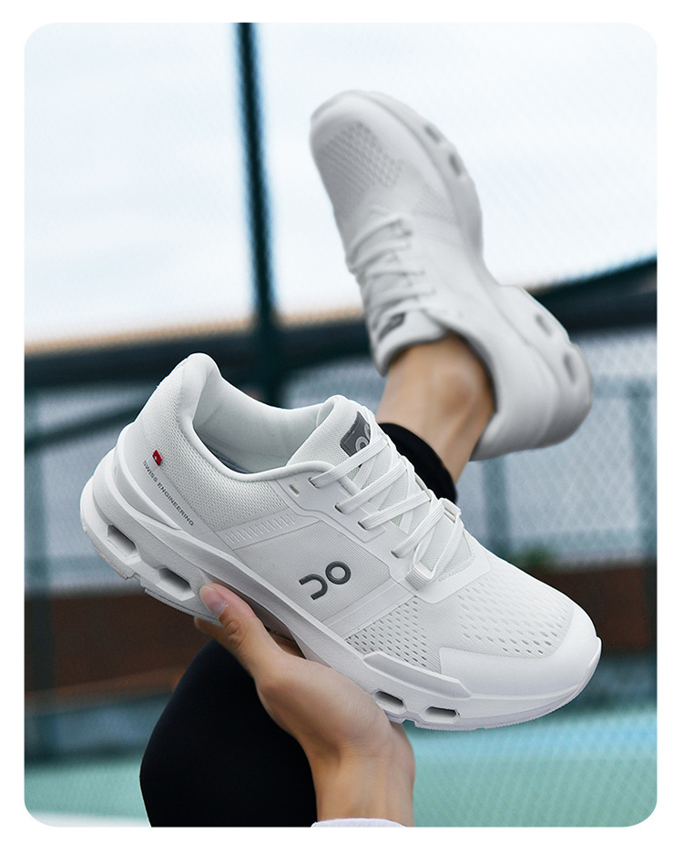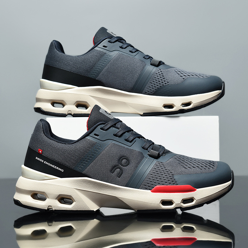 革新的なエアクッション技術を搭載した厚底スポーツシューズです。 靴底に配置された複数の通気孔が優れた衝撃吸収性と反発力を実現し、長時間の運動でも足への負担を軽減します。 メッシュ素材と合成皮革を組み合わせた軽量設計で通気性も良好です。 日常のジョギングからジムでのトレーニングまで幅広く活躍する、機能性とデザイン性を兼ね備えた一足です。