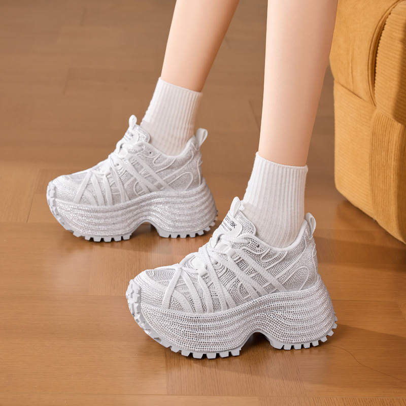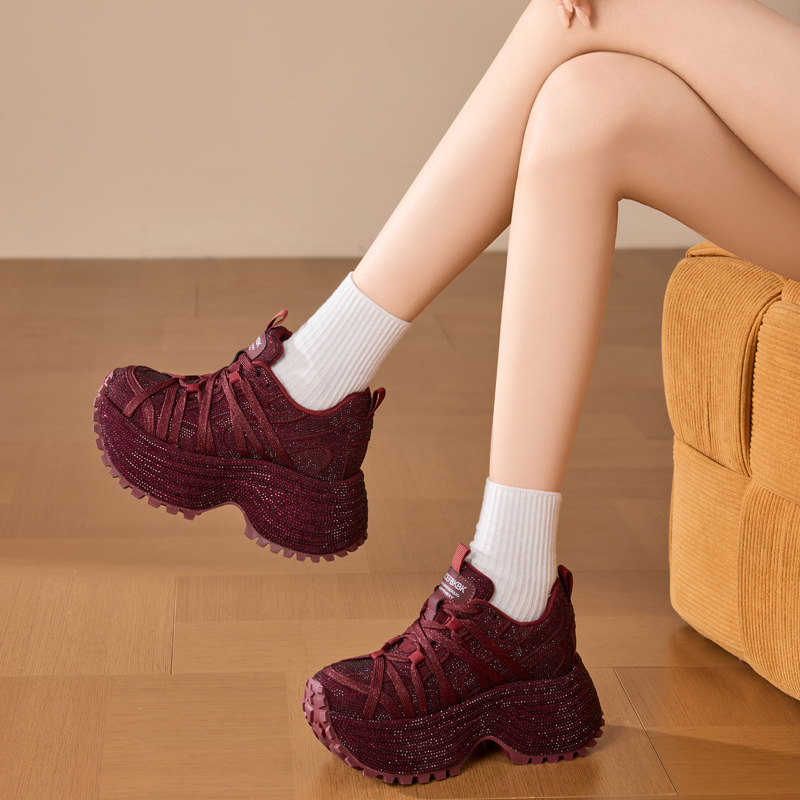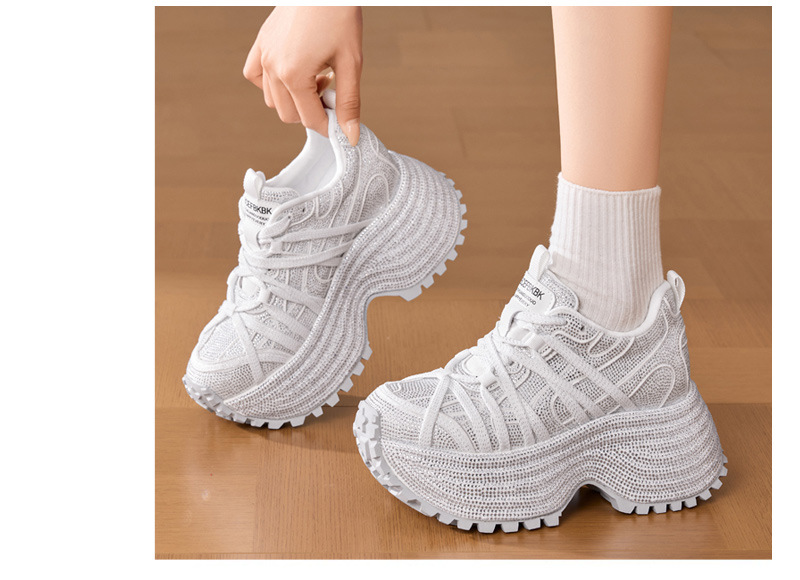 インパクト抜群の極厚ソールが魅力的な厚底スニーカーです。 立体的な編み込みデザインのメッシュ素材が足元に個性を演出します。 約8センチのボリューム感あるソールで身長アップ効果も抜群です。 ギザギザのアウトソールは滑りにくく安定した歩行をサポートします。 軽量設計で長時間の着用も快適なスニーカーに仕上がっています。 カジュアルからストリート系まで幅広いコーディネートに対応できます。