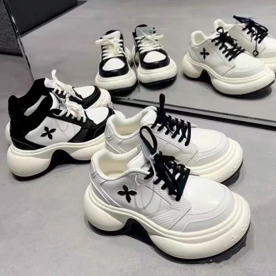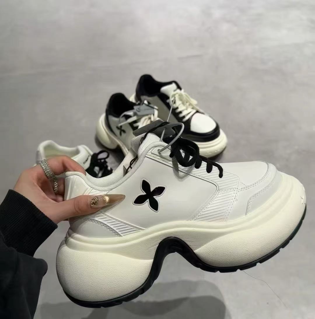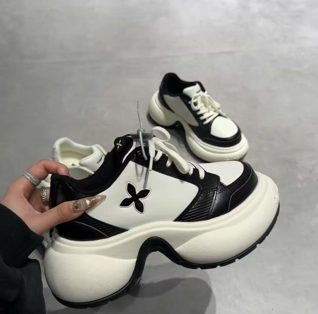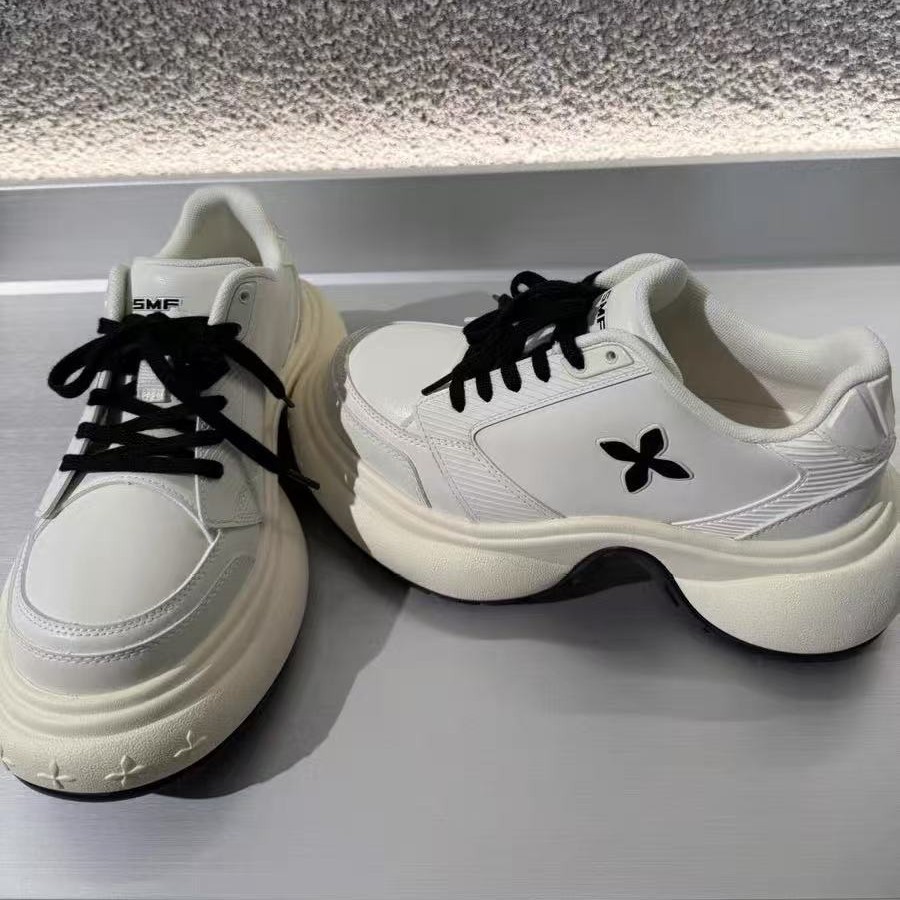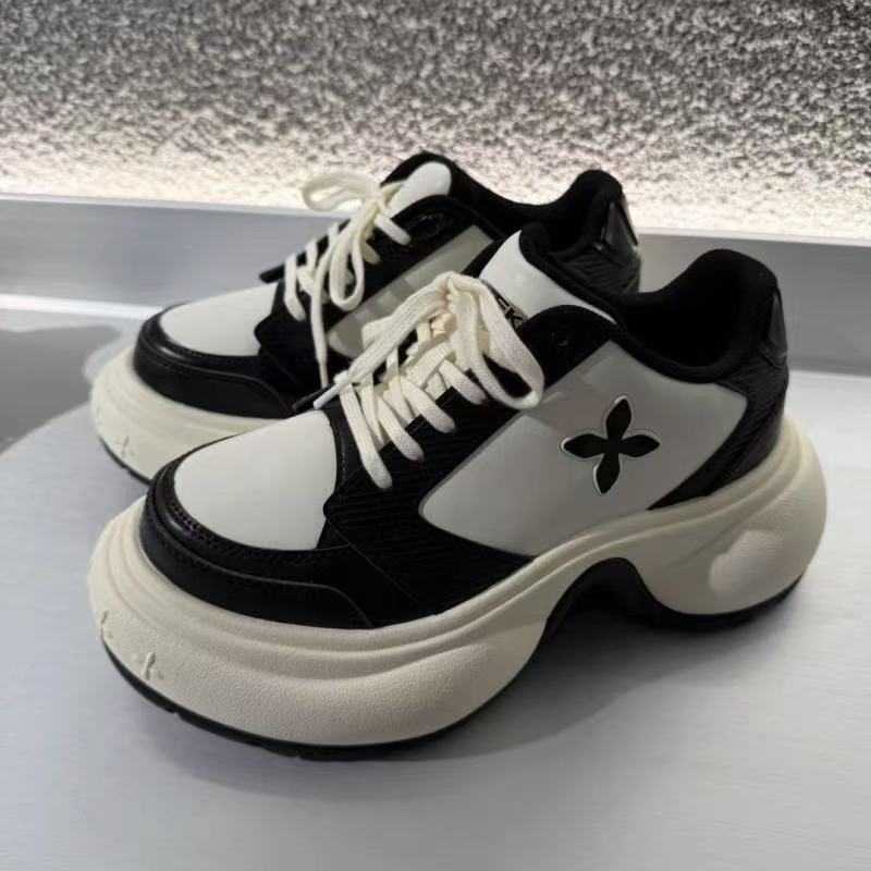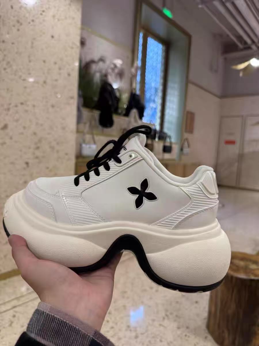 サイドに施された花のワンポイントがアクセントになった厚底スニーカーです。