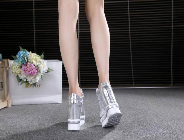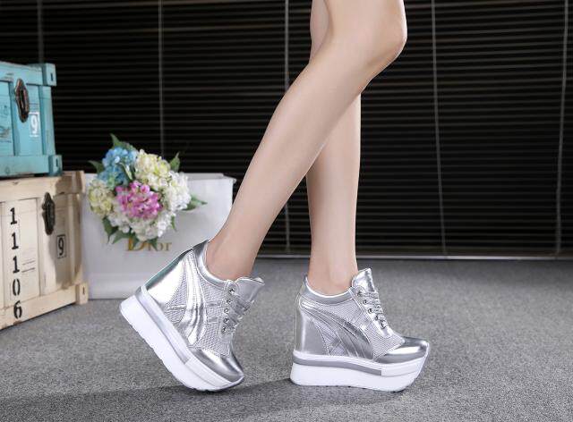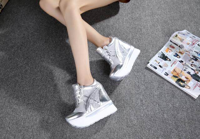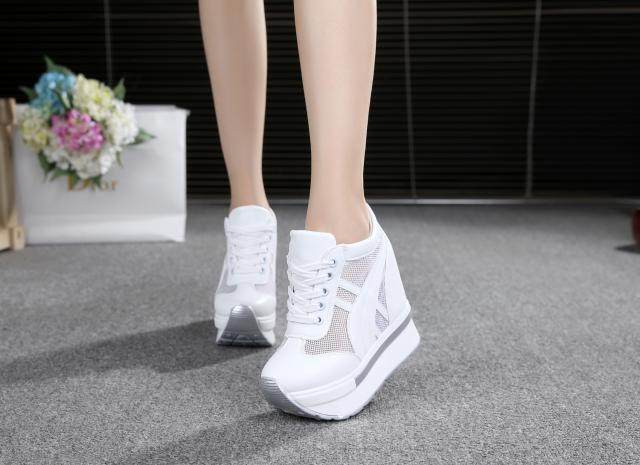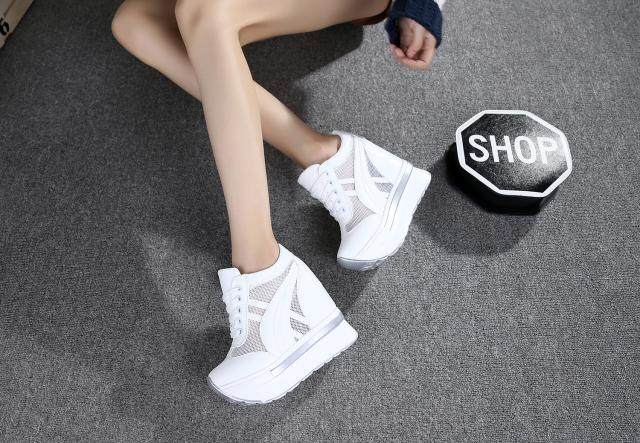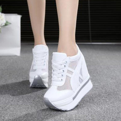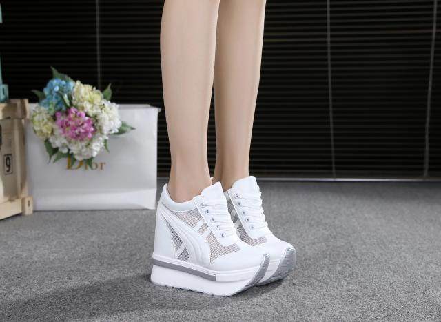 通気性抜群のメッシュ素材を側面に配した厚底スニーカーです。