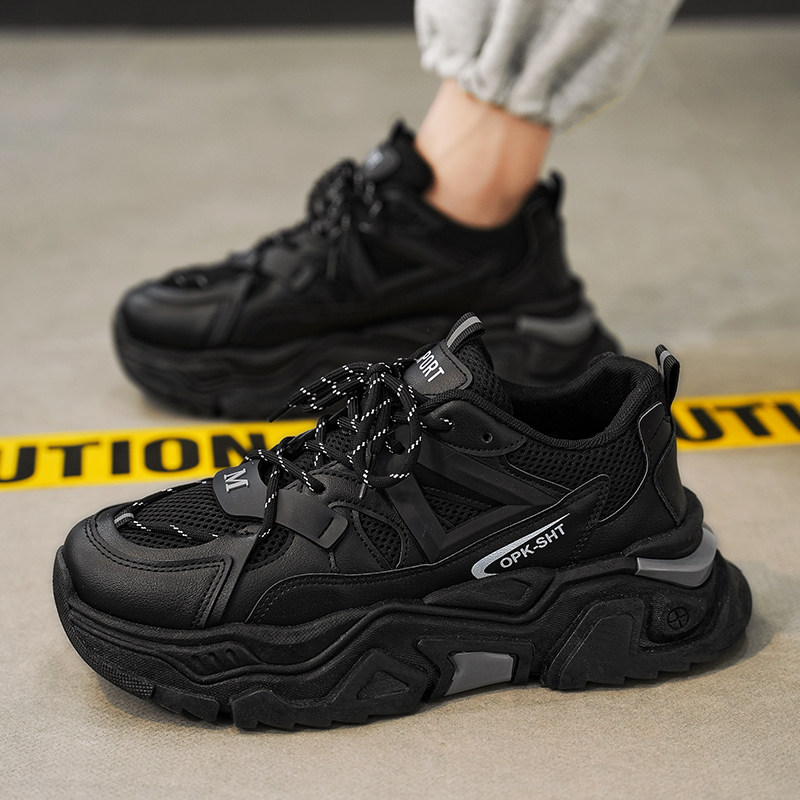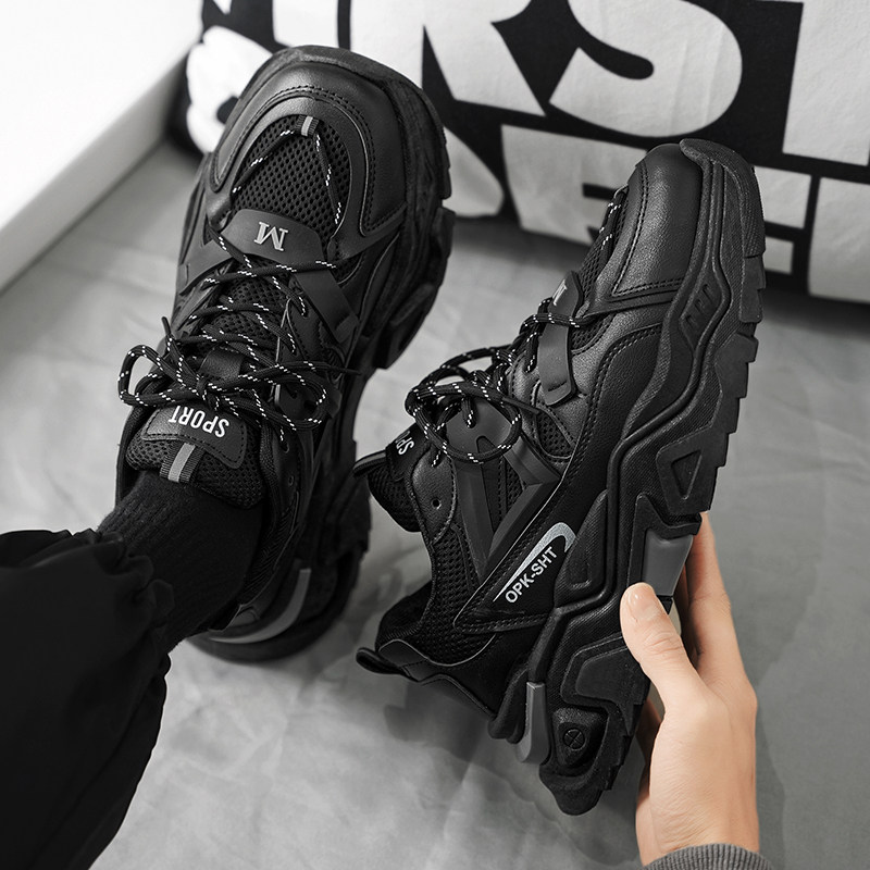 存在感抜群のデザインが特徴的な厚底スポーツシューズです。 通気性に優れたメッシュ素材と合成皮革を組み合わせた立体的なアッパーデザインで、足元を個性的に演出します。 ボリュームのある厚底ソールが衝撃を吸収し、長時間の着用でも快適な履き心地を実現します。 カジュアルコーディネートのアクセントとして、街歩きやアクティブなシーンで活躍する一足です。