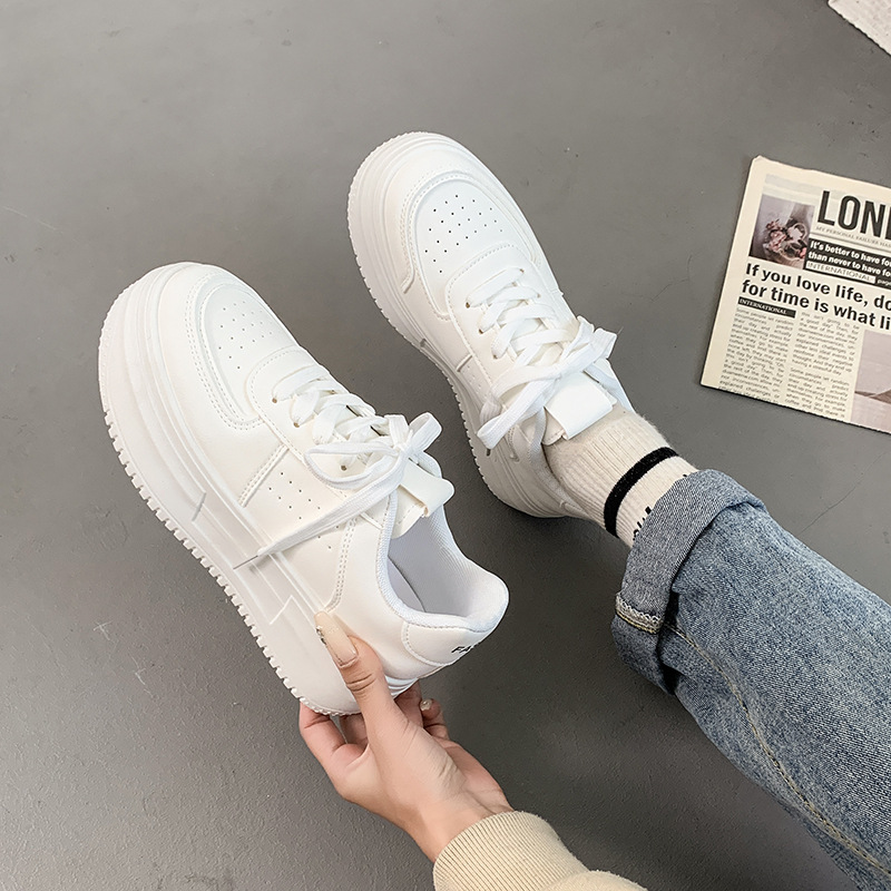 クリーンなデザインが魅力の厚底スニーカーです。