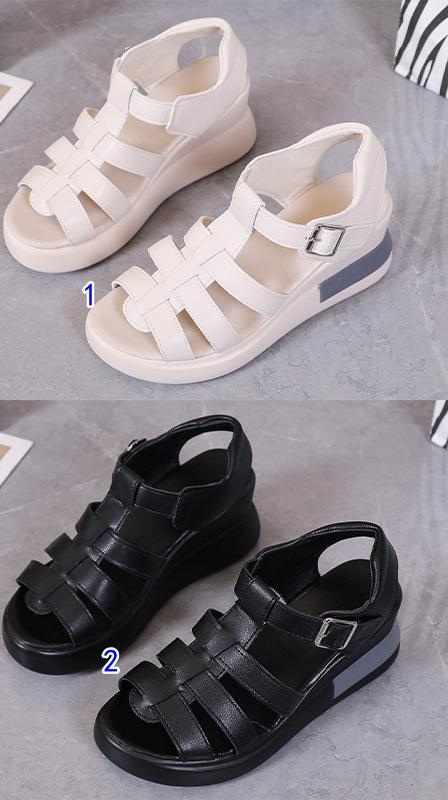 今年注目の韓国系デザインを取り入れた+6cm厚底グラディエーターサンダル。