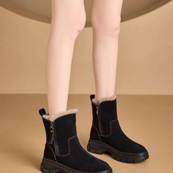 【仕様】 素材:スエード調アッパー/ムートン風ライニング 内側:全面ふわふわファー 厚底:推定 約5cm カラー:ブラック/ブラウン タイプ:スノーブーツ(秋冬向け)