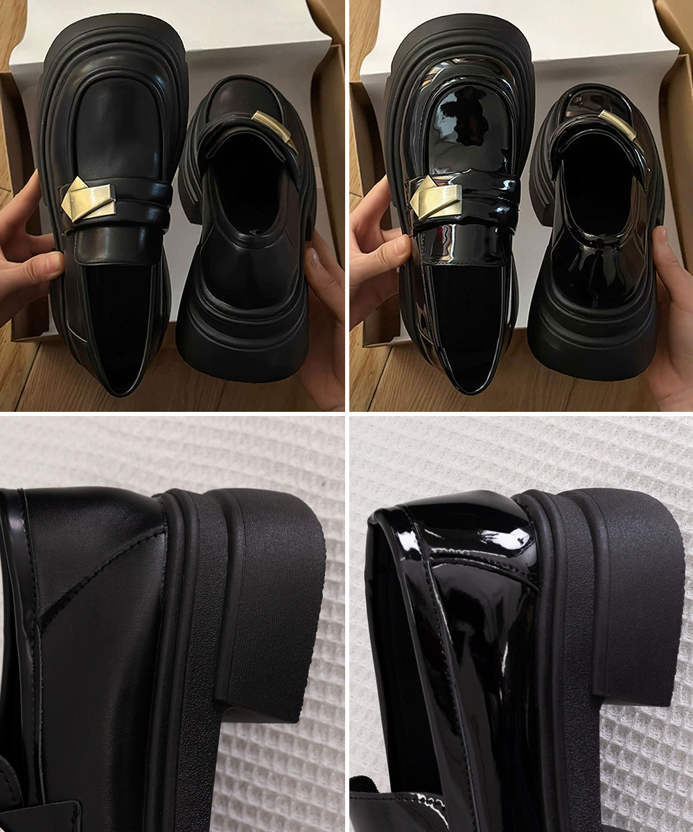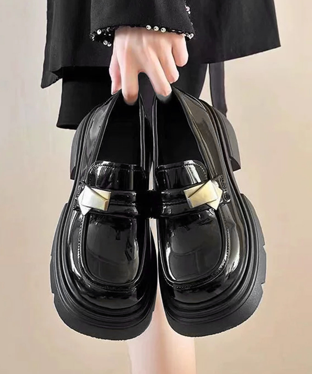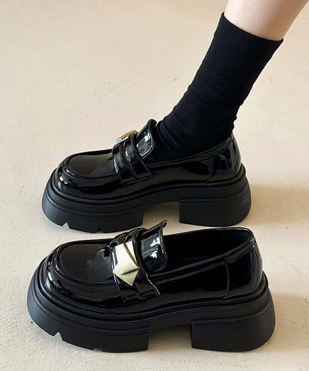 ボリューム感のある厚底ソールと金属装飾が映える学生風ローファー。