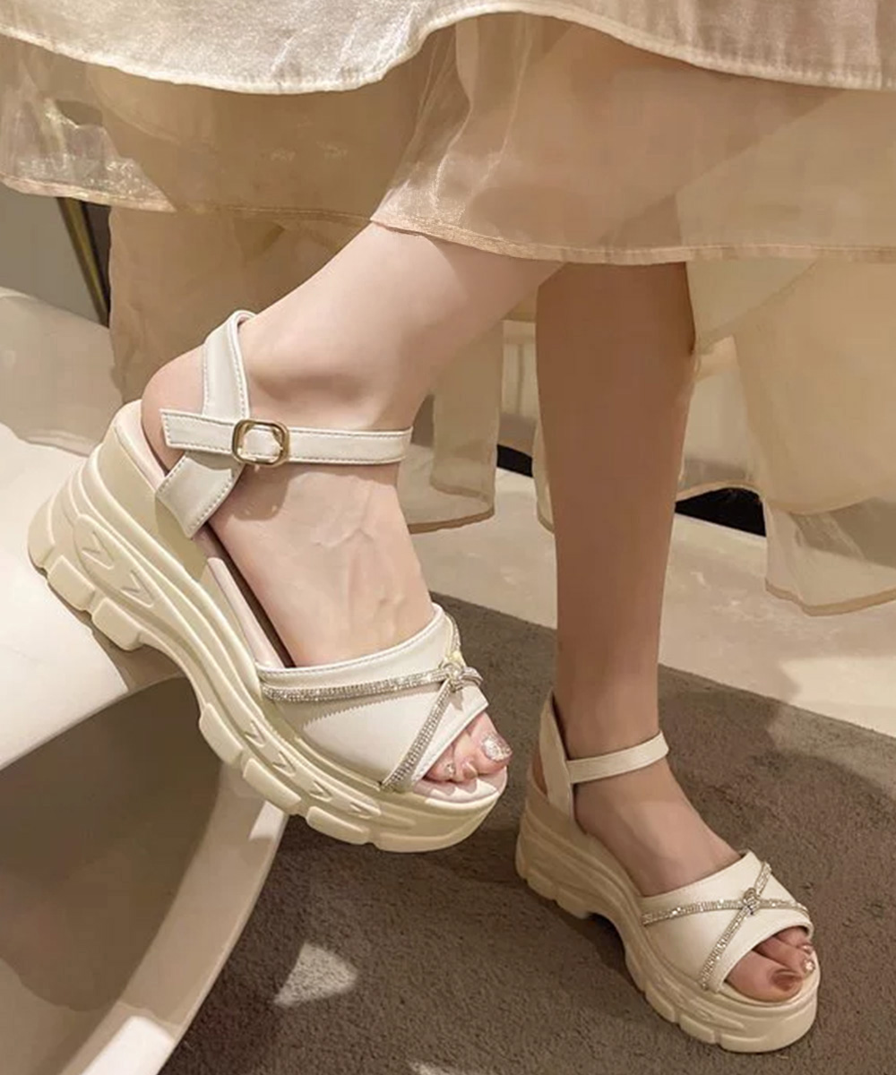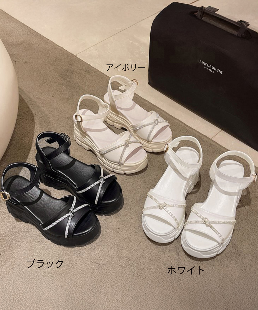 デイリーからお出かけまで使える華やかリボン×厚底デザインのアンクルストラップサンダル。