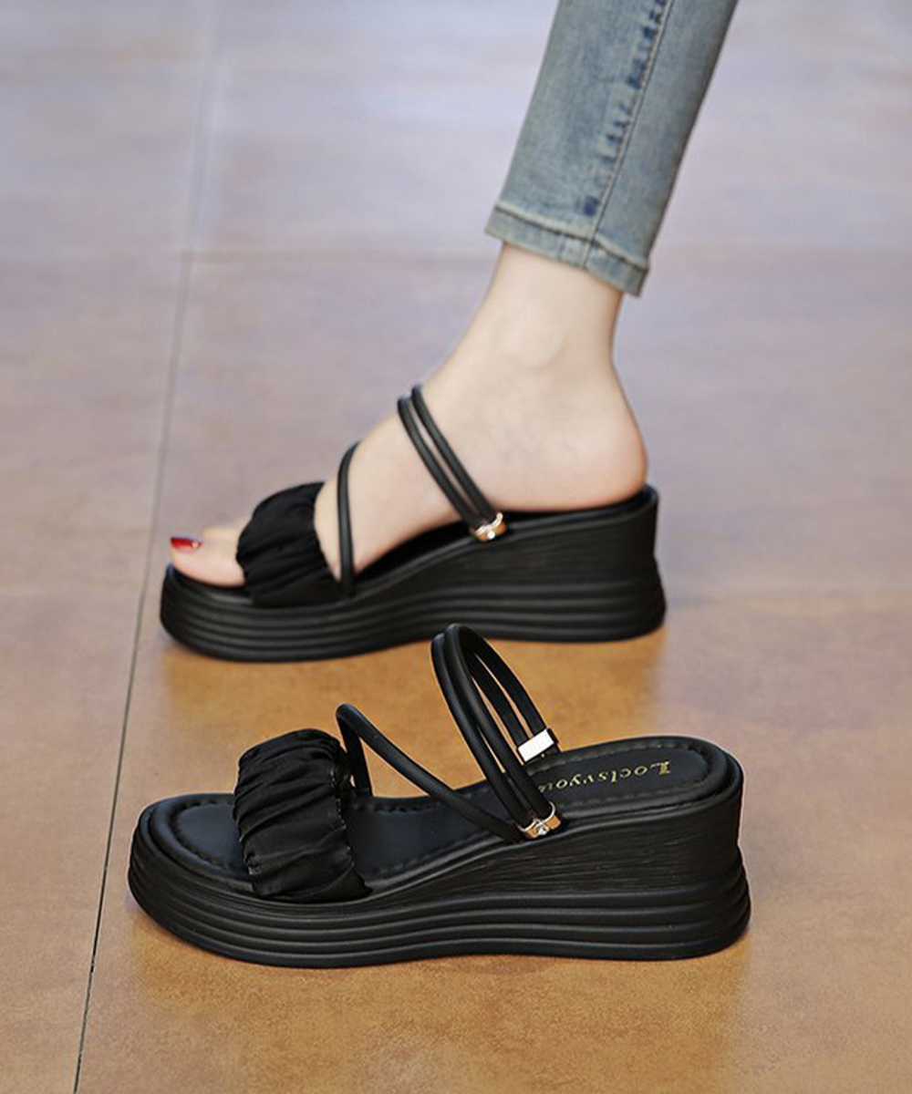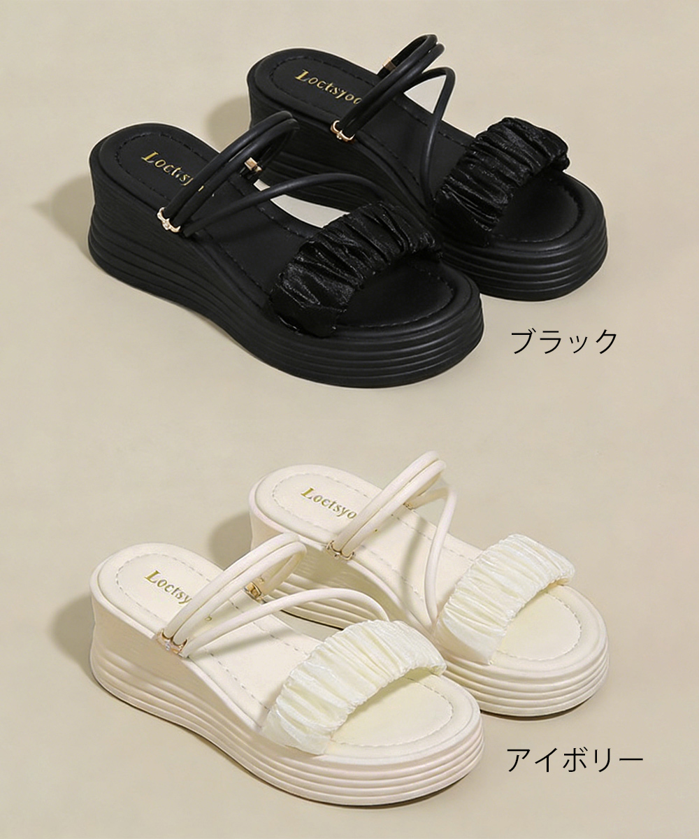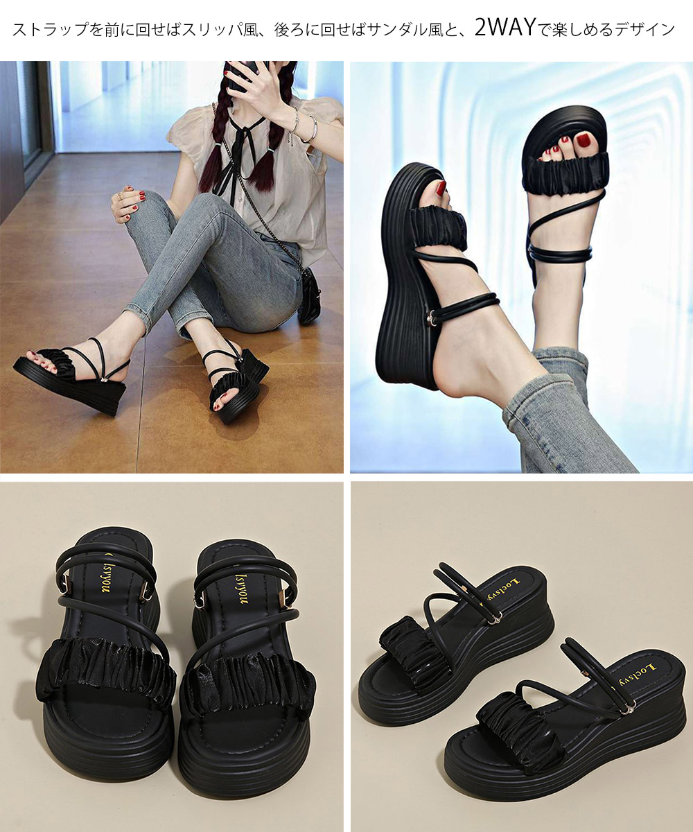 デイリーからお出かけまで幅広く使える6.5cm厚底の2WAYギャザーストラップサンダル。