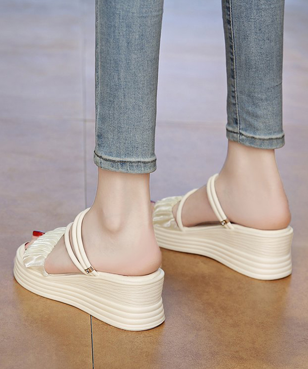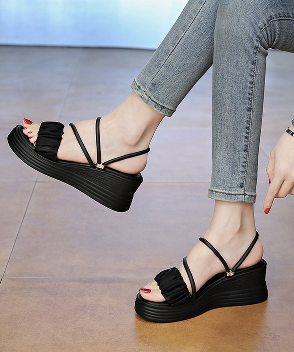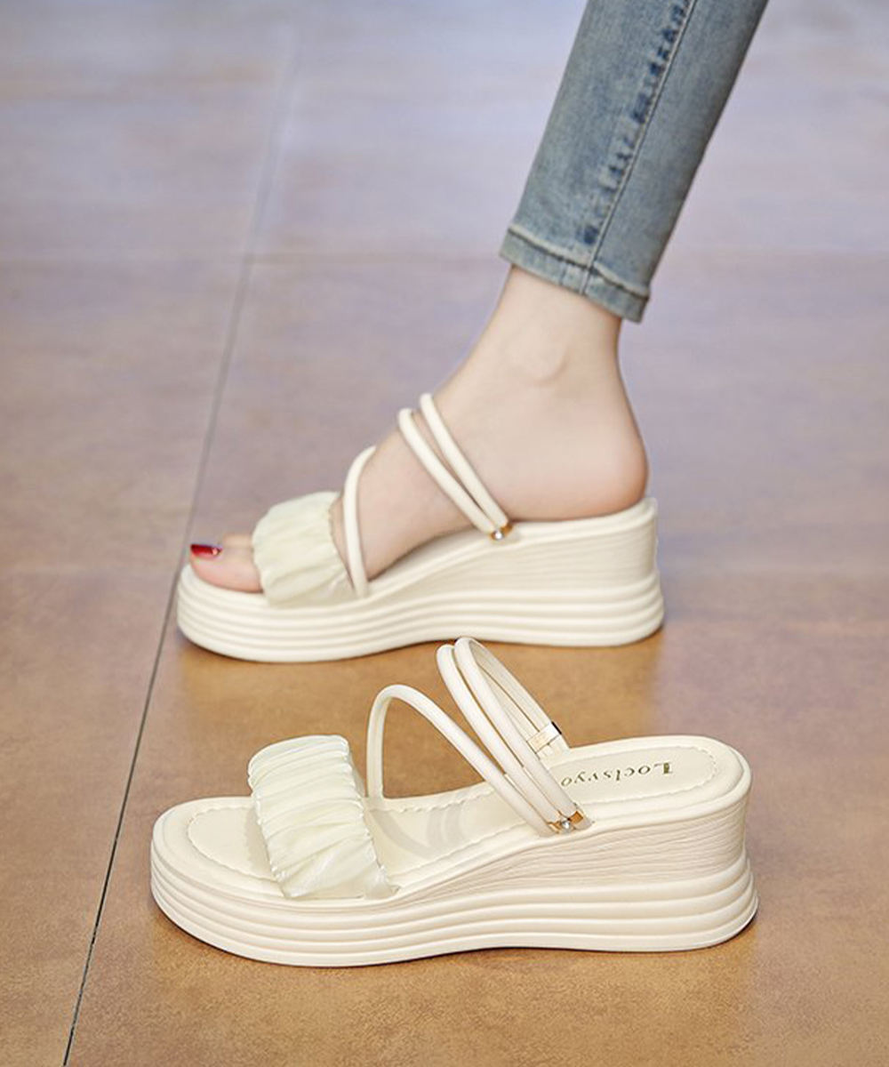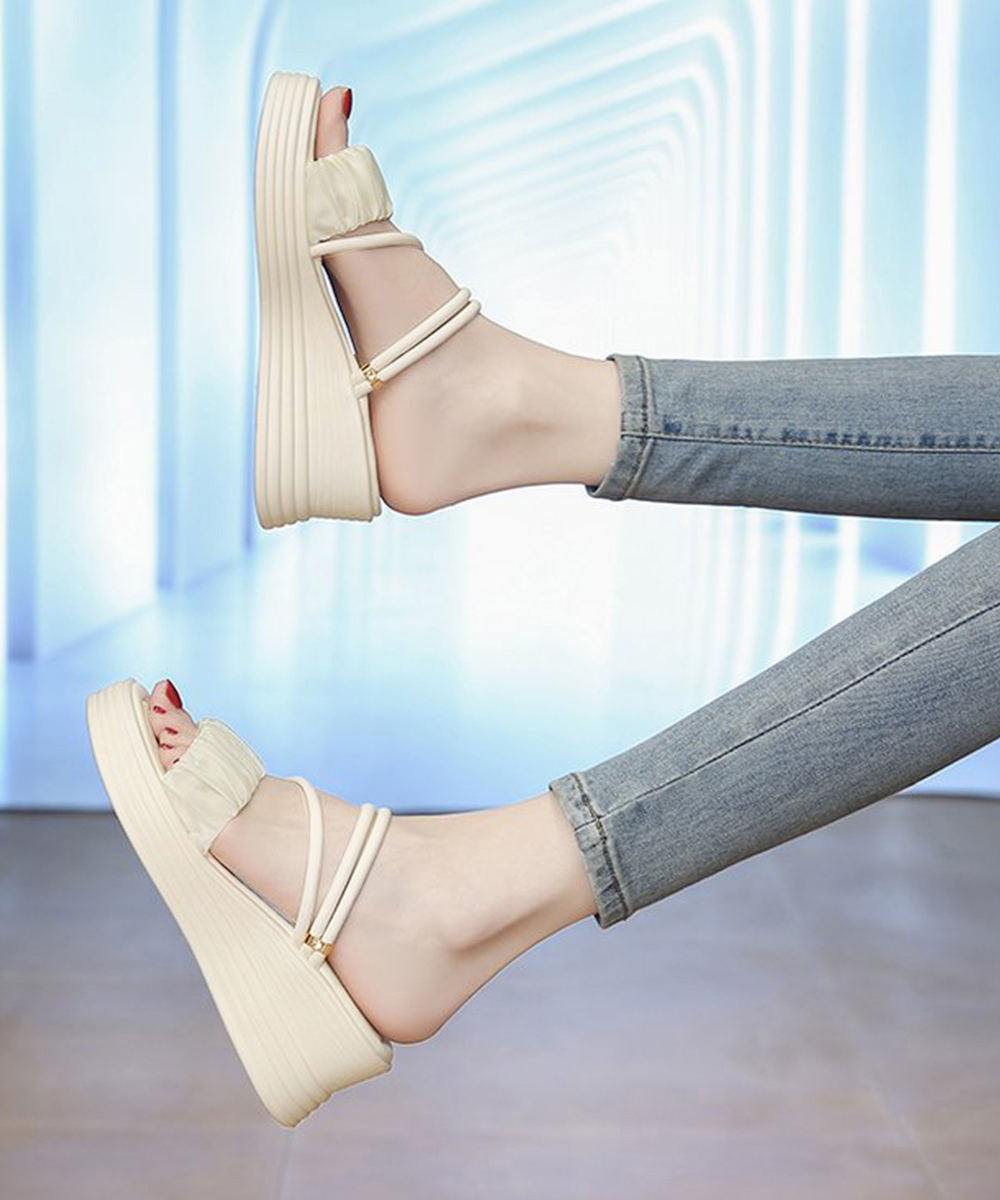 デイリーからお出かけまで幅広く使える6.5cm厚底の2WAYギャザーストラップサンダル。