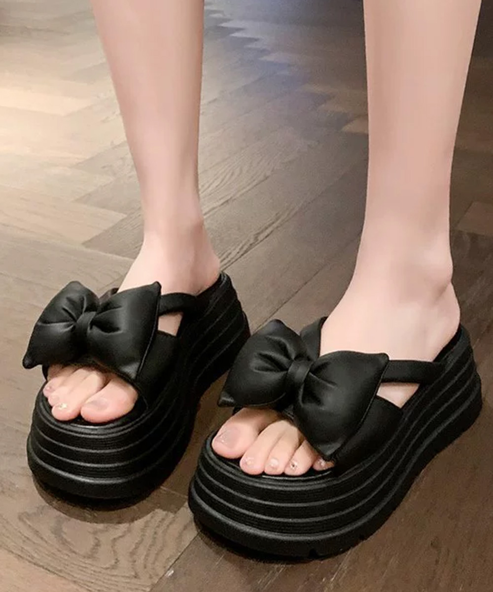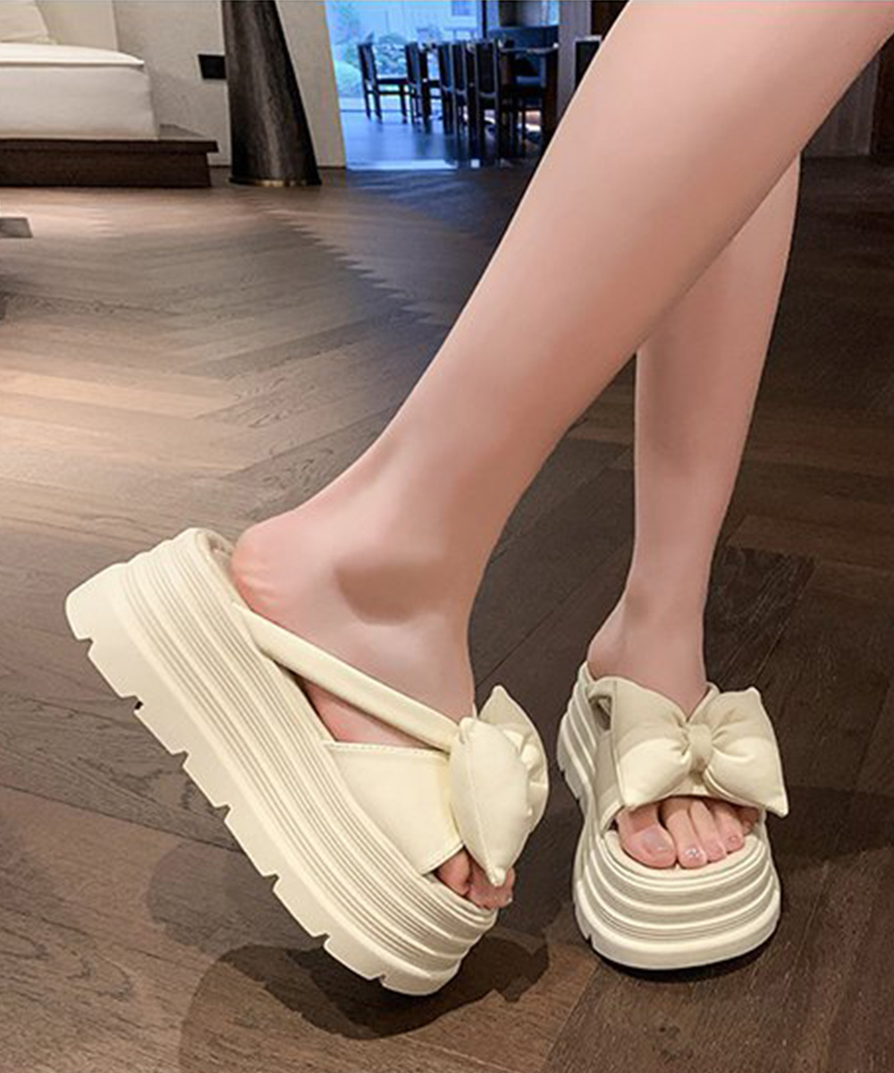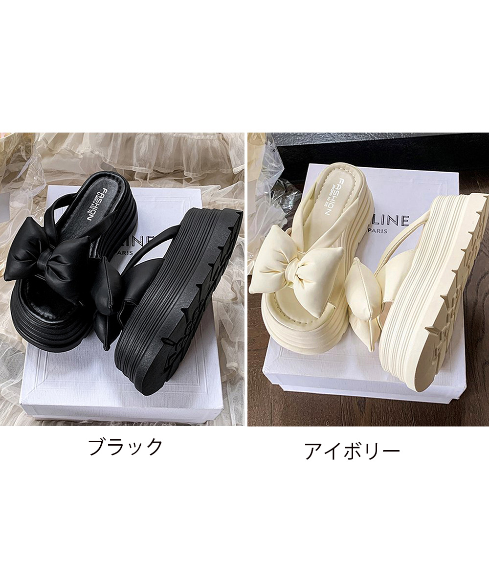 大きめリボンが足元を華やかに見せる7cm厚底サンダル。