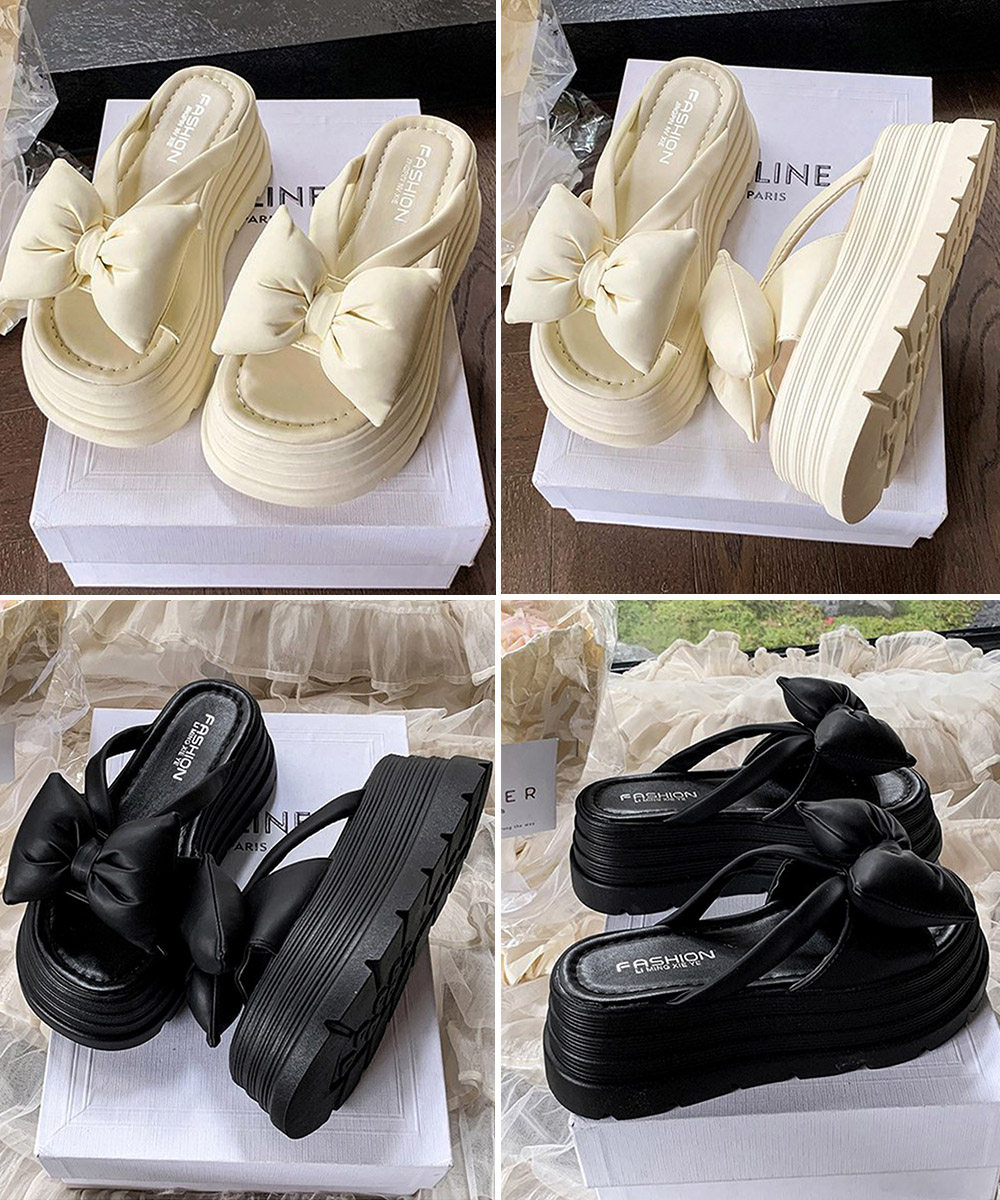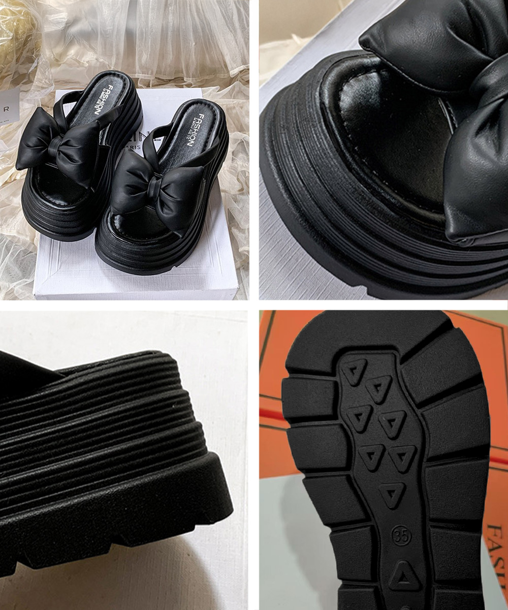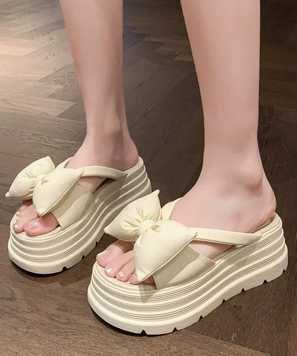 大きめリボンが足元を華やかに見せる7cm厚底サンダル。