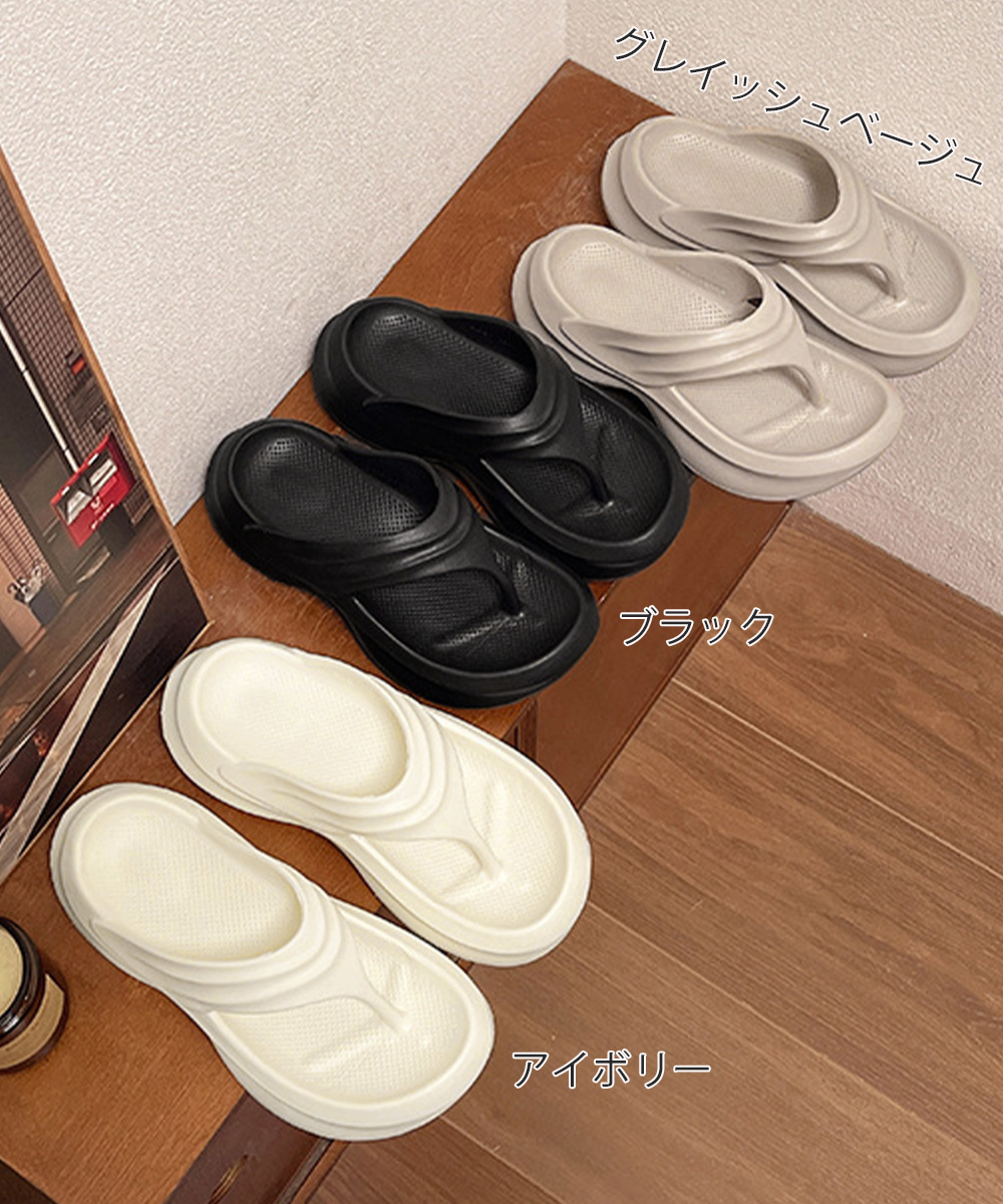 軽量EVAで長時間歩いても疲れにくい6cm厚底トングサンダル。