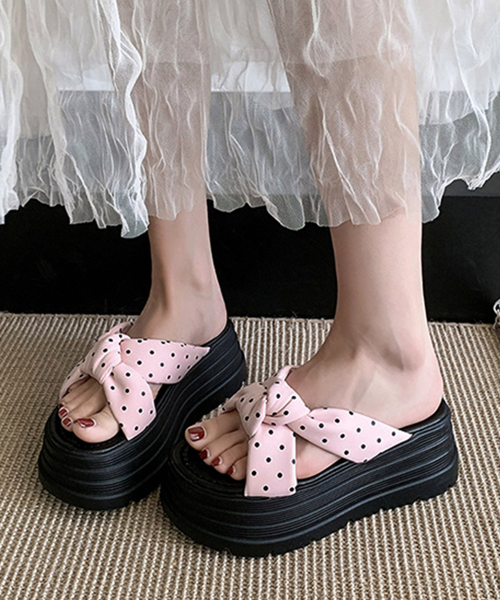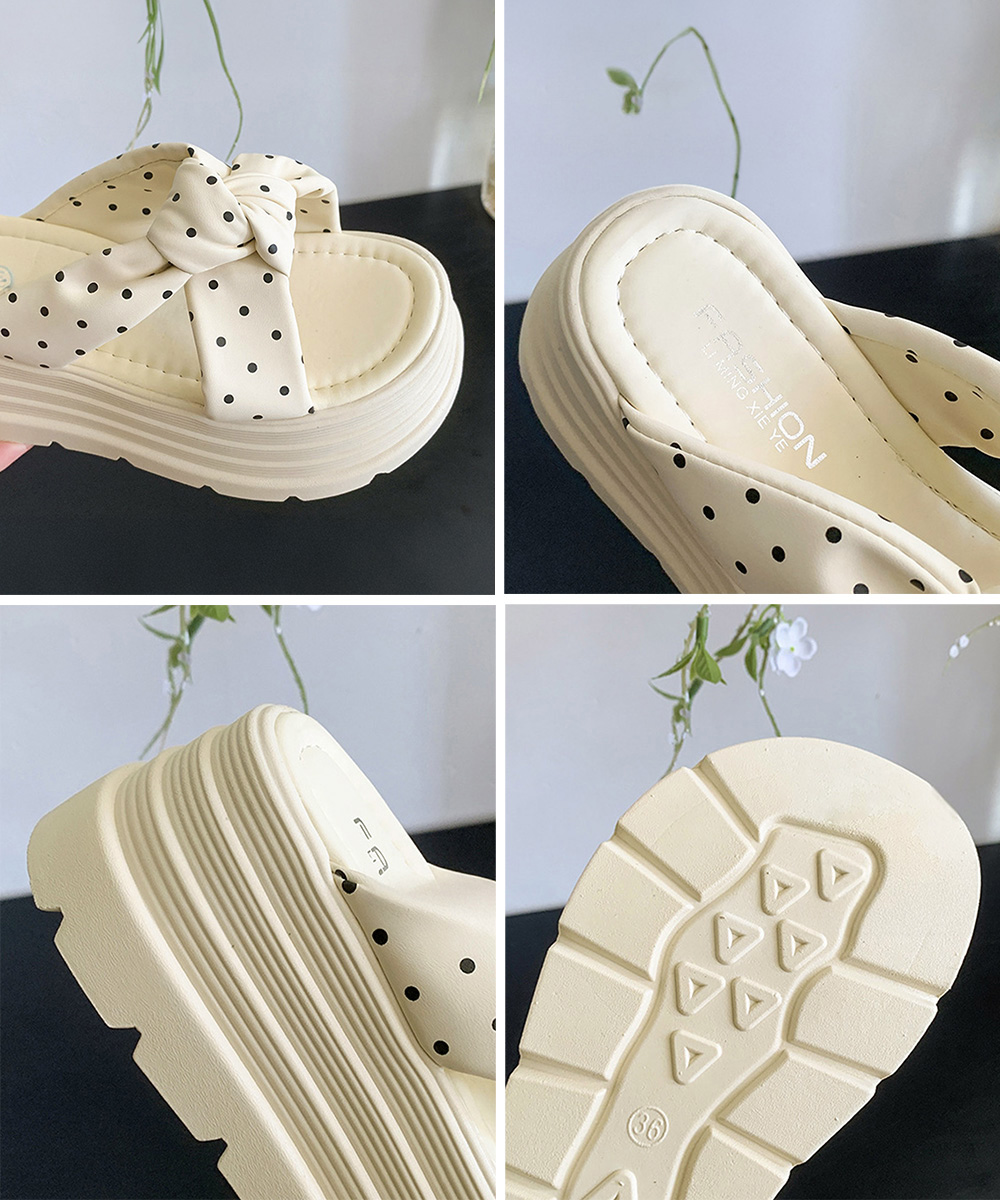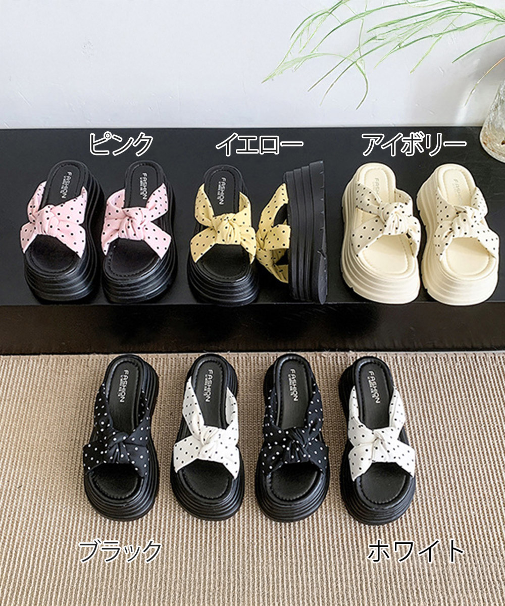大きめリボン×レトロなドット柄が目を引く8cm厚底サンダル。