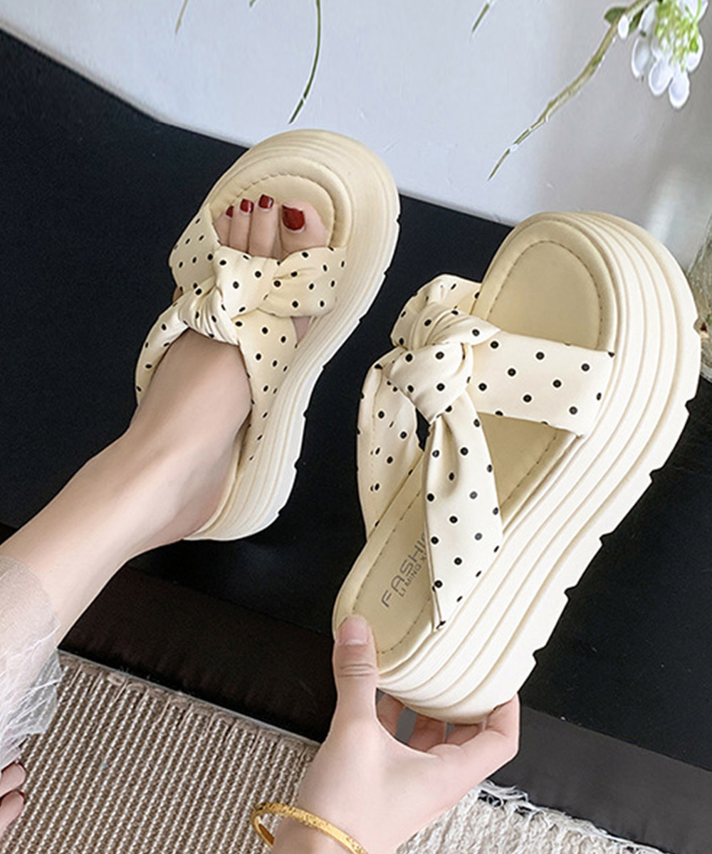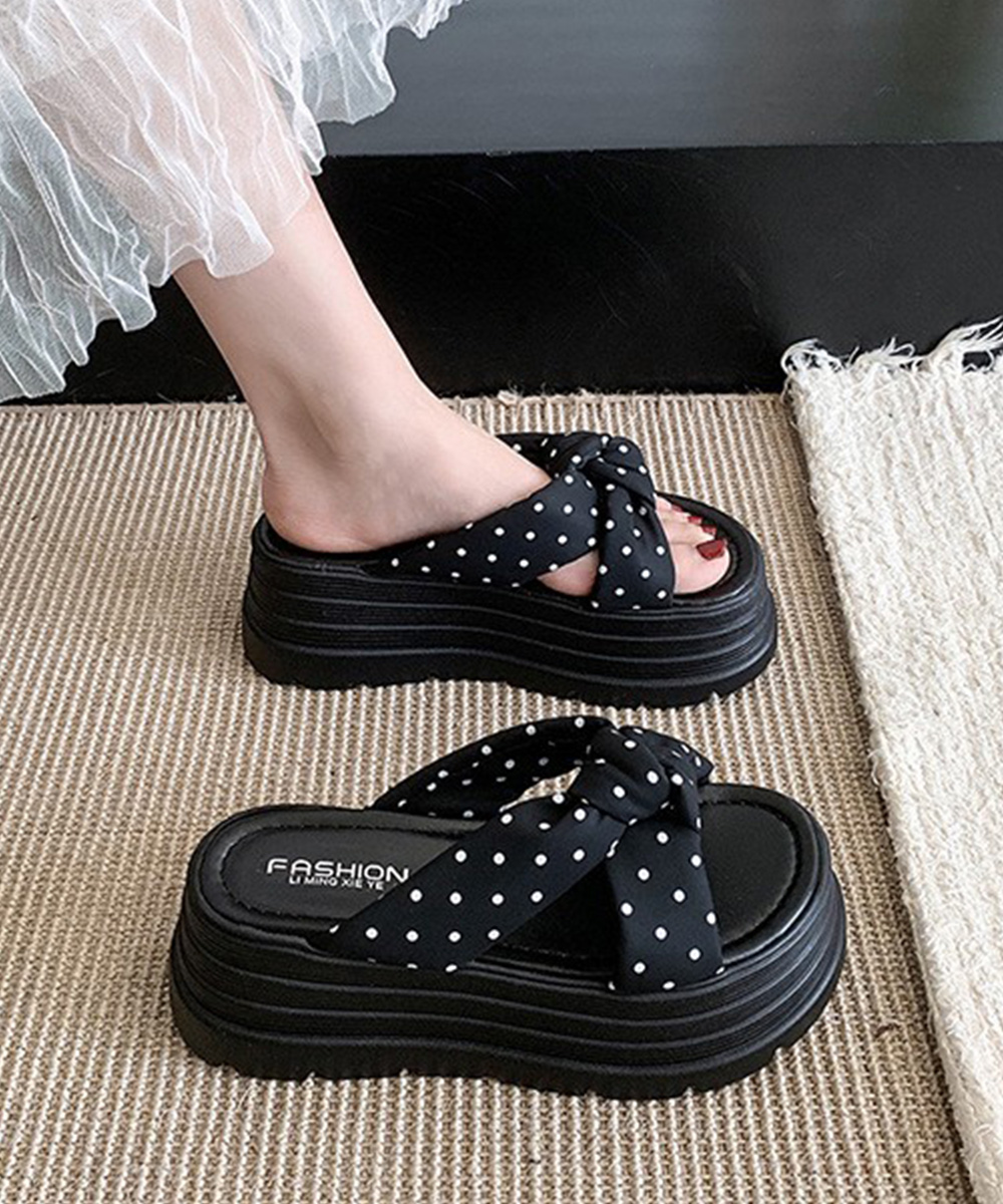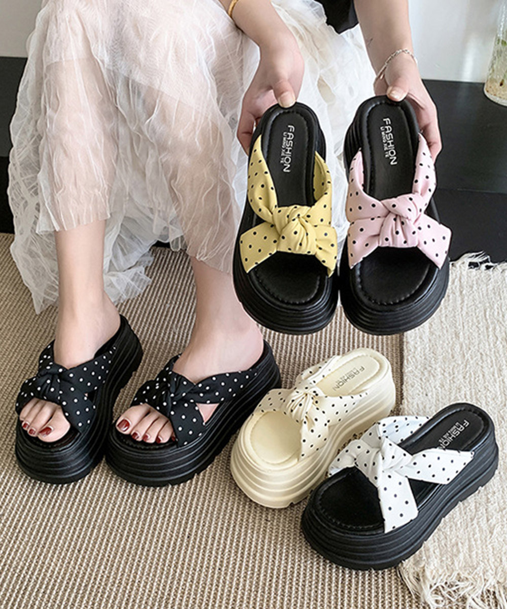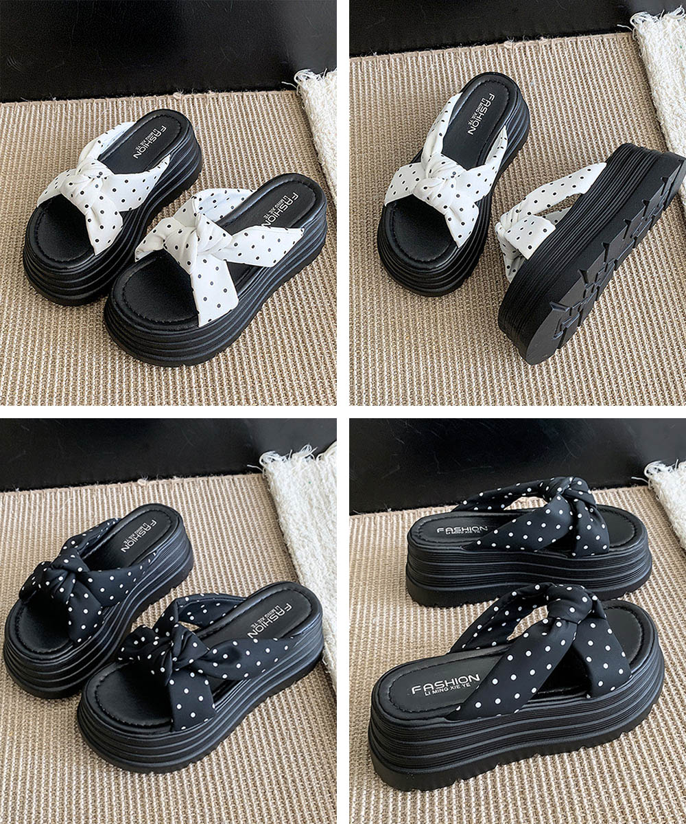 大きめリボン×レトロなドット柄が目を引く8cm厚底サンダル。