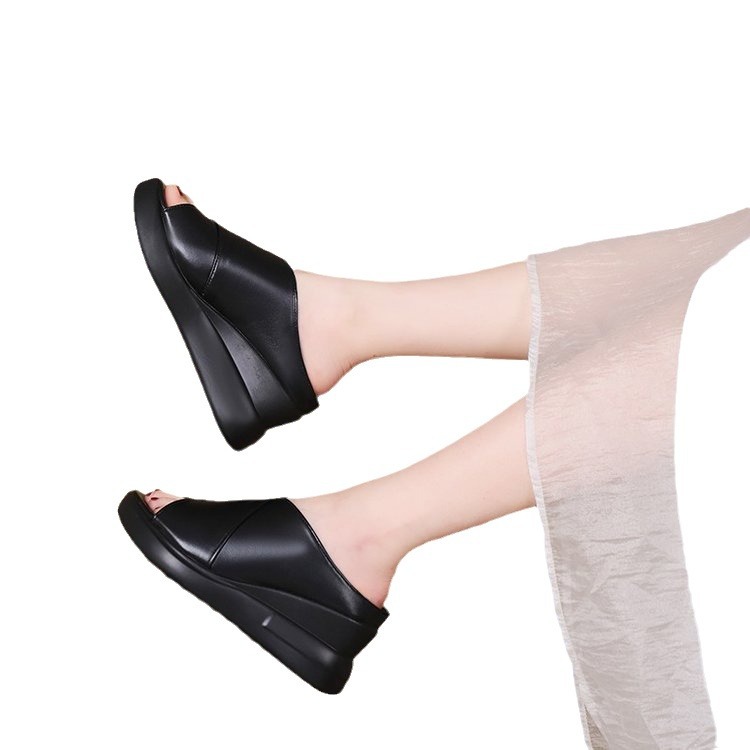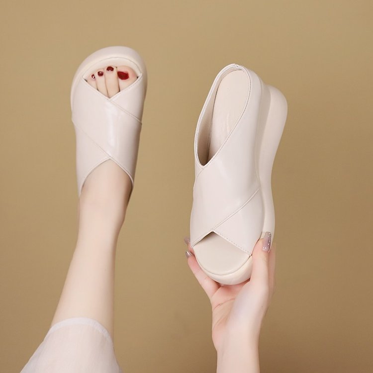 7cm厚底のウェッジソールで自然に脚長効果をつくる韓国風デザインサンダル。