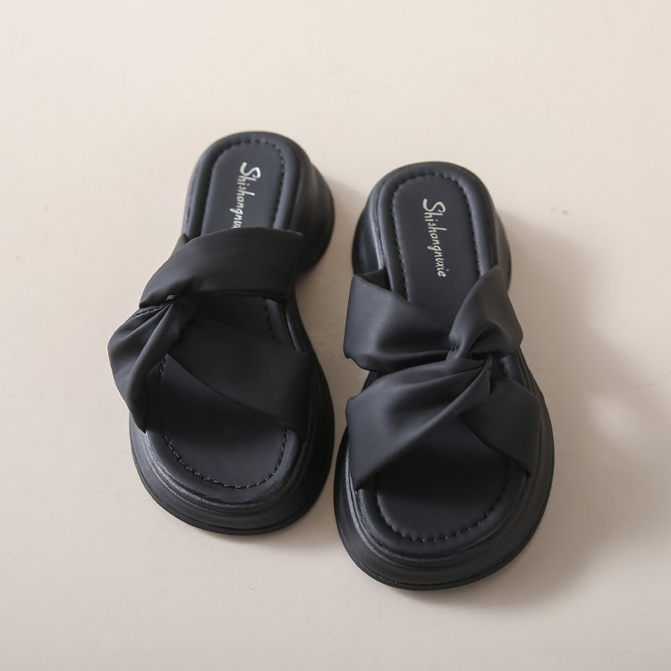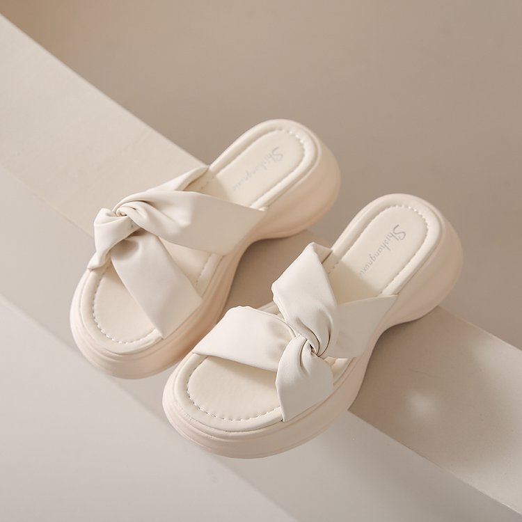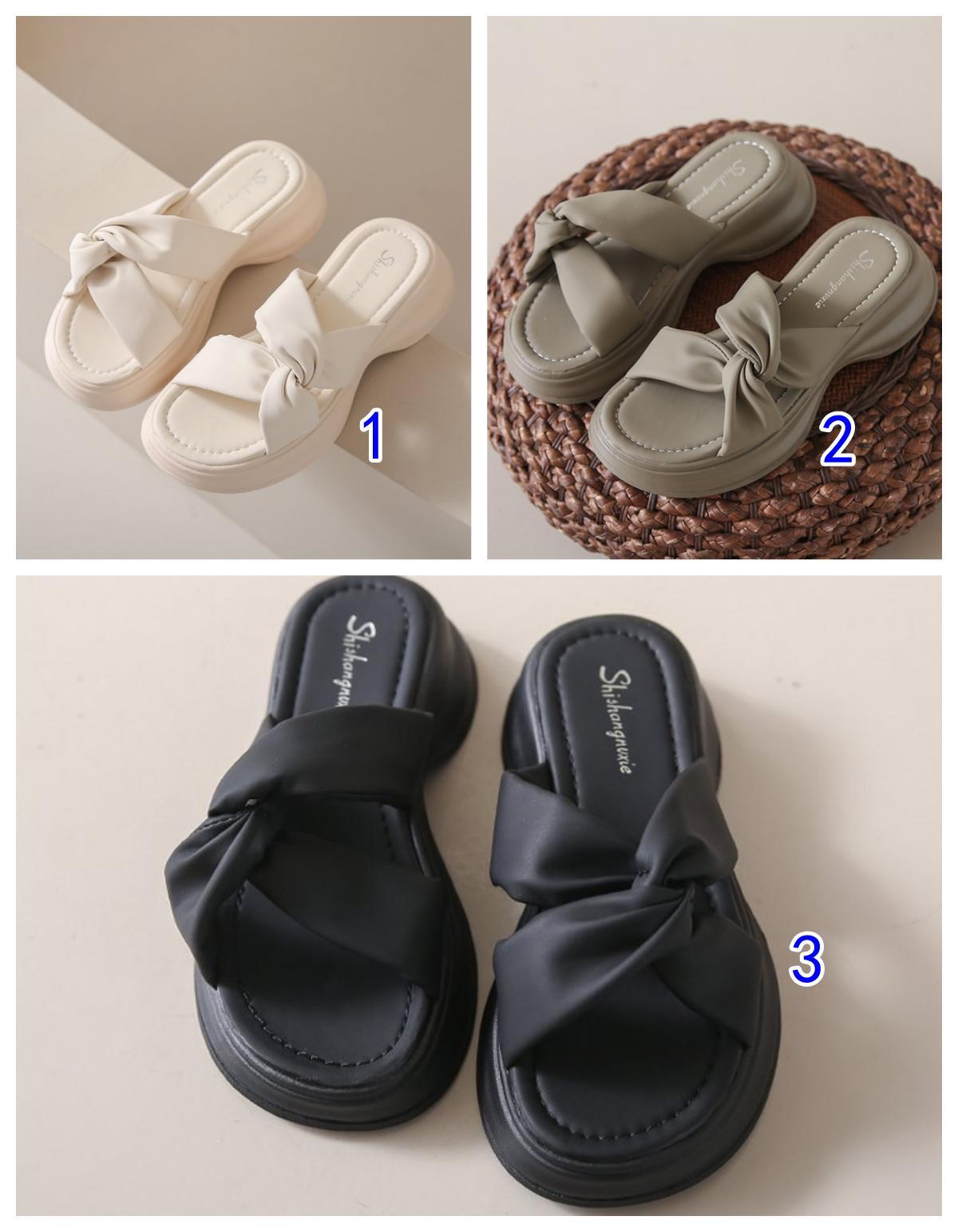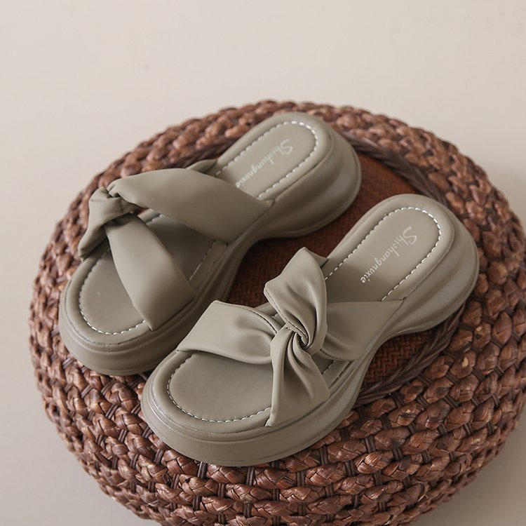 大きめリボンが足元をガーリーに見せる5.5cm厚底サンダル。