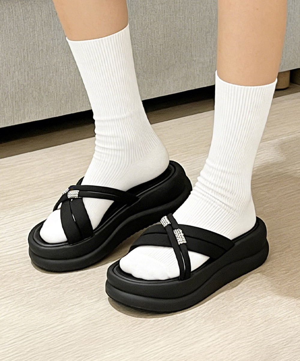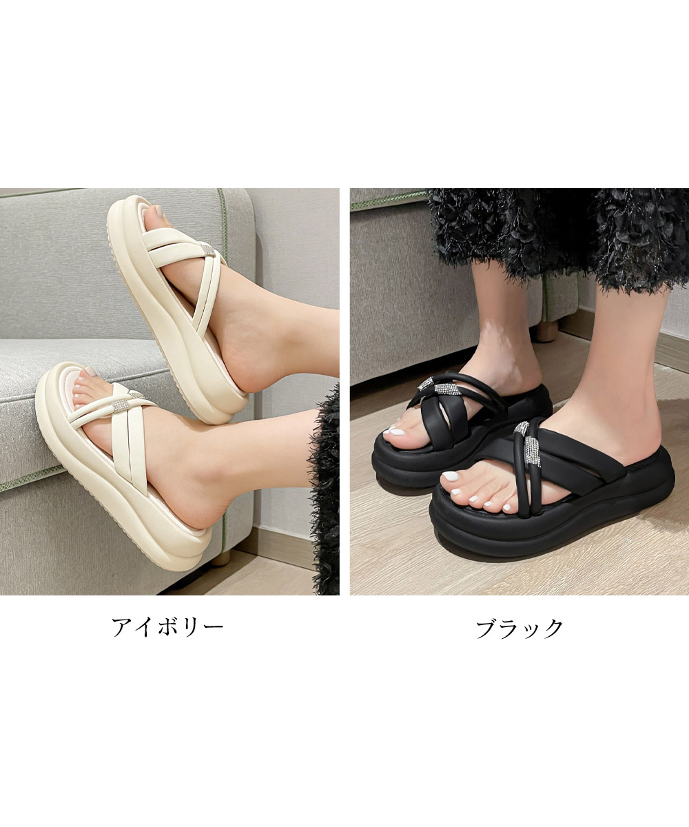 夏のコーディネートにボリューム感をプラスする厚底クロスベルトサンダル。