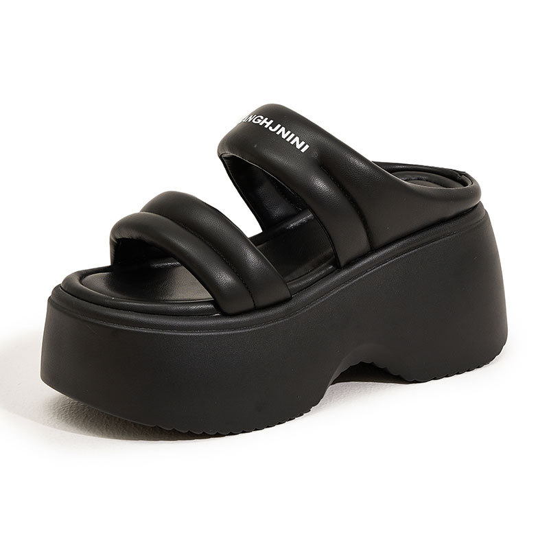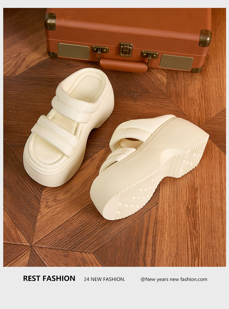 話題の厚底サンダルで足元から印象的なスタイルを演出。