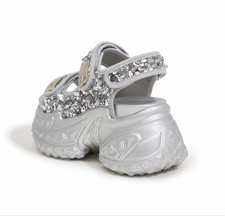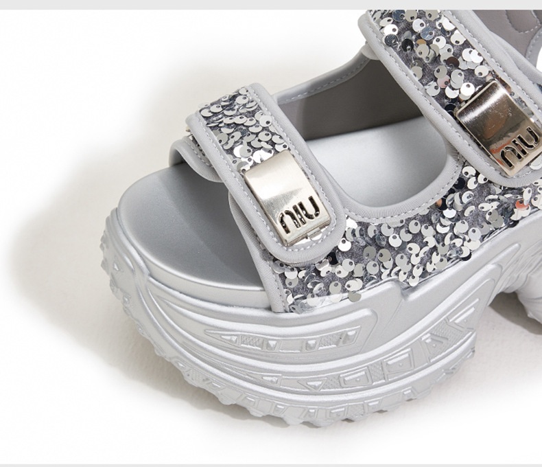 話題の厚底サンダルで足元を華やかに演出。