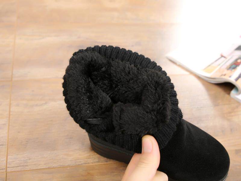 履き口には伸縮性のあるニット素材を使用し、脚にフィットして優しく包み込みます。