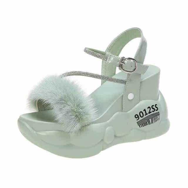 足元を華やかに彩るふわふわのファーが特徴的な厚底サンダルです。