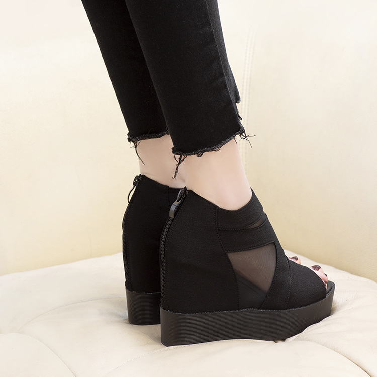 メッシュウェッジ厚底サンダル|涼感×脚長×きれいめ対応