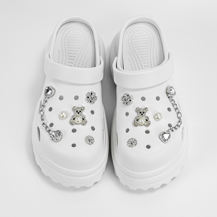 パール×ラインストーンの装飾が映える、夏フェミニン系厚底サンダル。約4.5cmの厚底で脚長効果と軽快な履き心地を両立。リラックス感と華やかさを兼ね備え、カジュアルコーデに差し色を加える一足。韓国系デザインでSNS映えも狙える、夏の主役アイテムです。