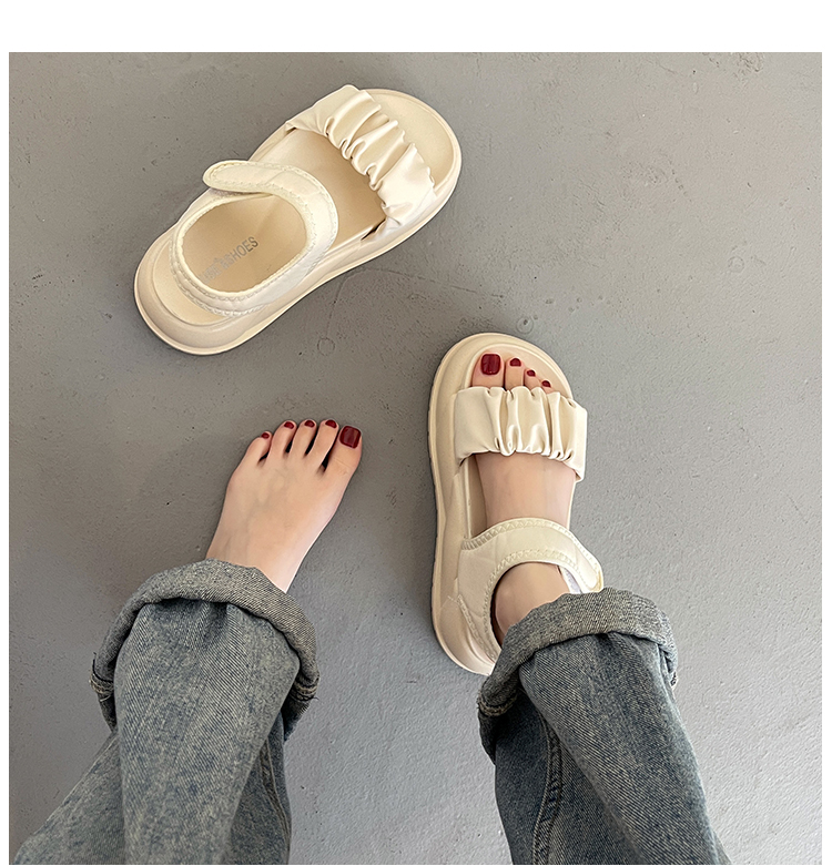 ふんわりシワ加工のストラップが特徴的な厚底サンダルです。